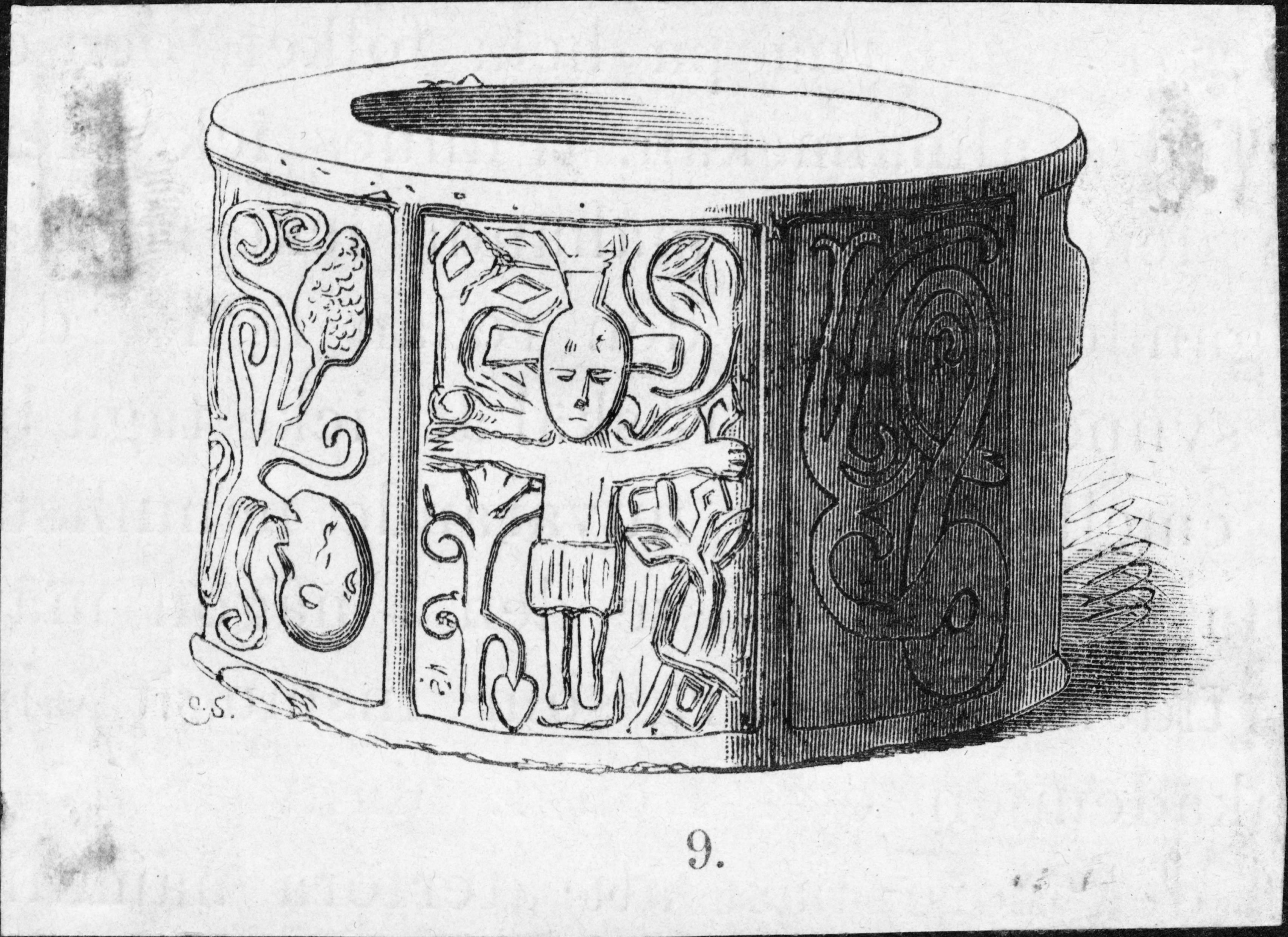 Beskrivning: Dopfunt, 1100-talet, cuppan. Tryck.