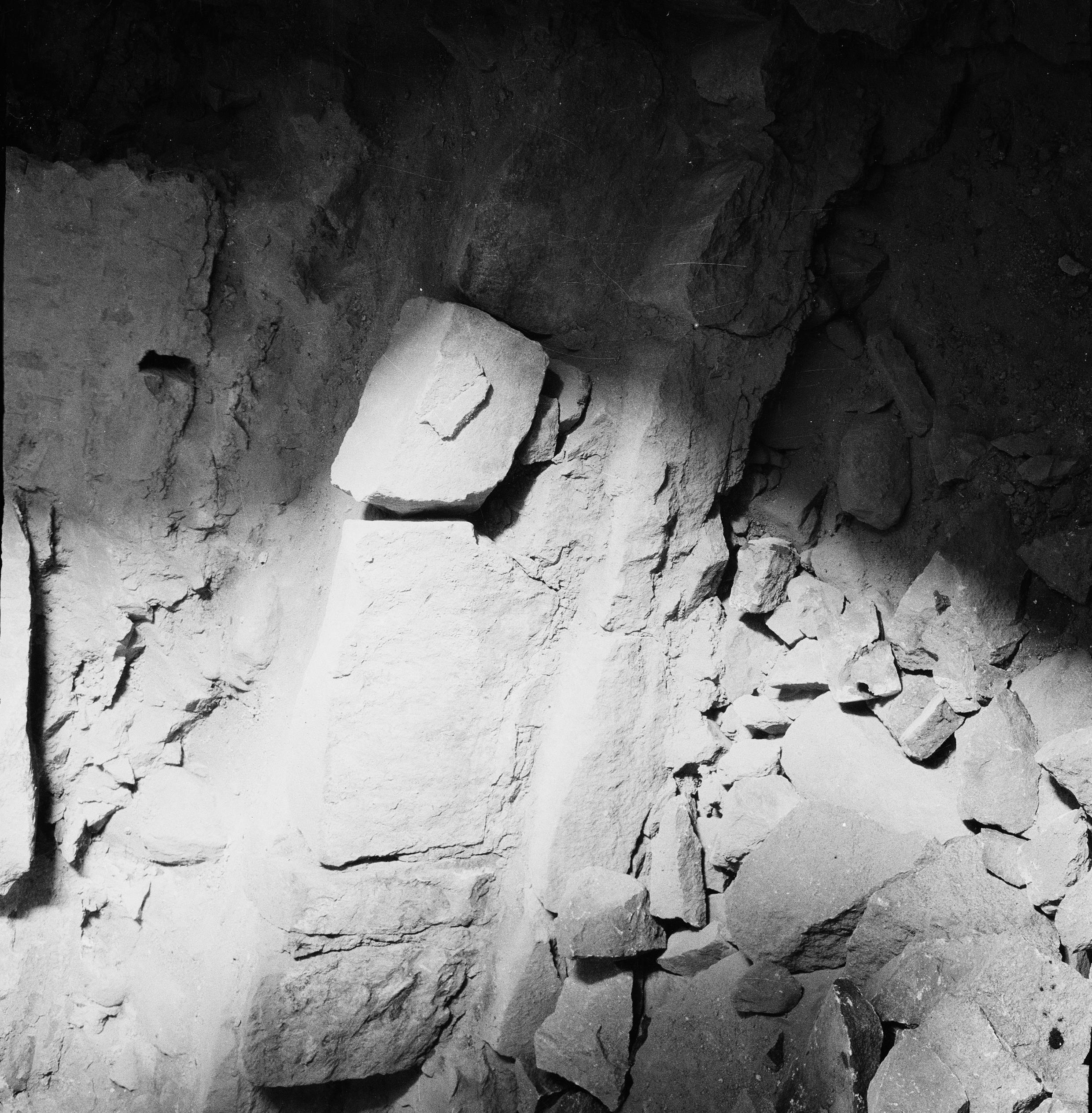 Beskrivning: Altaret under restaureringen: Äldre altarklacken, detalj.