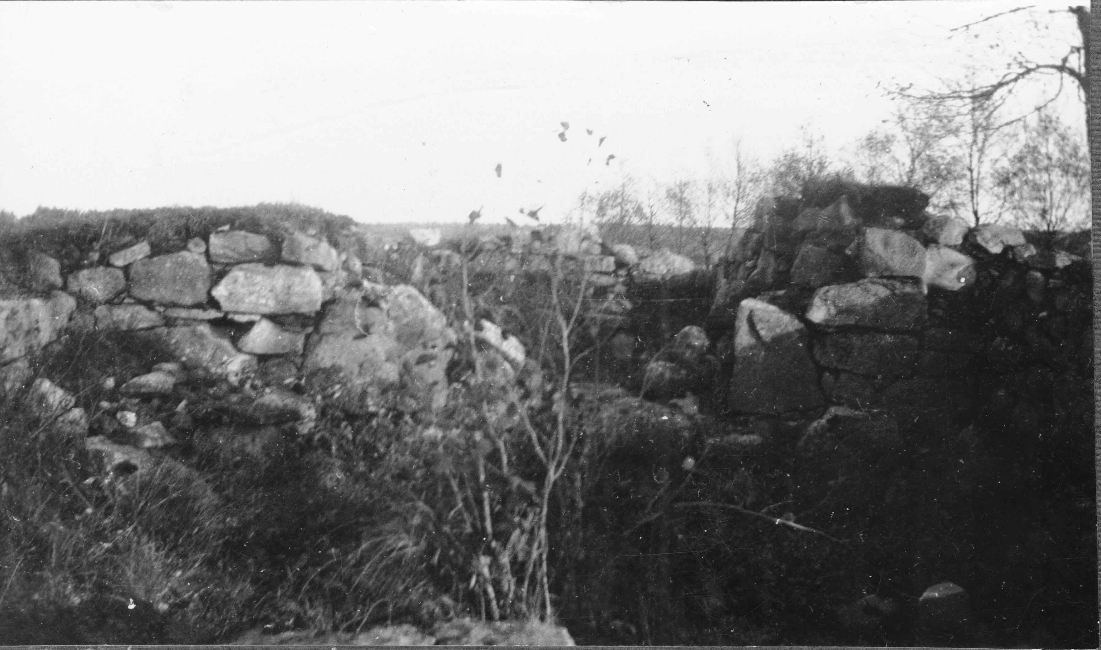 Beskrivning: Kyrkoruinens inre. Framtill långhsuet med medeltida altare och baktill koret med kvarvarande triumfbågen.