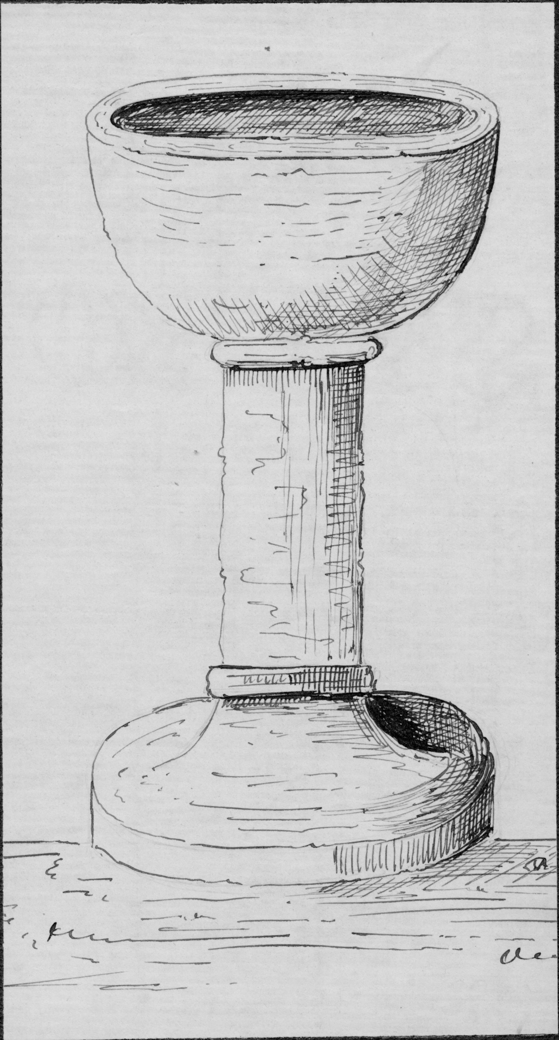 Beskrivning: Dopfunt, 1200-talet, teckning.