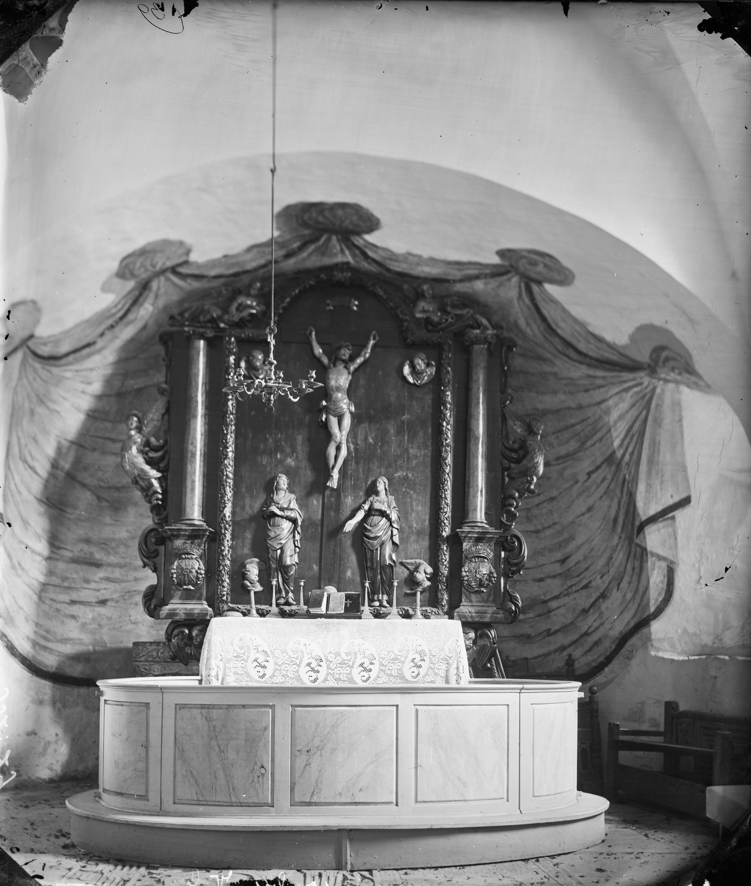 Beskrivning: Altare med altaruppsats från 1600-talet.
