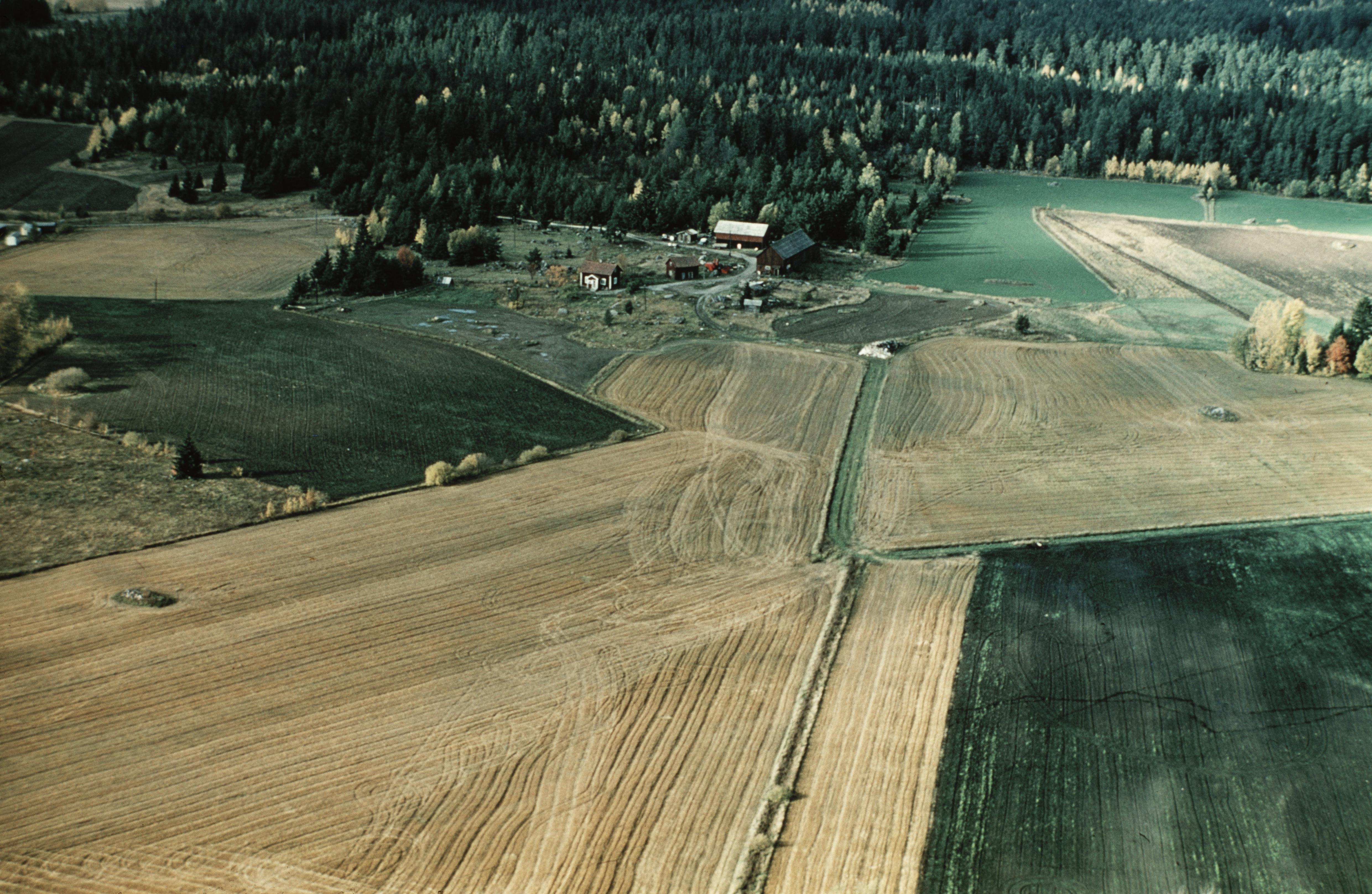 Beskrivning: Beskrivning: Ospecificerad plats. Gårdsmiljö i Västeråstrakten. Fotosyfte: Flygbildsdokumentation