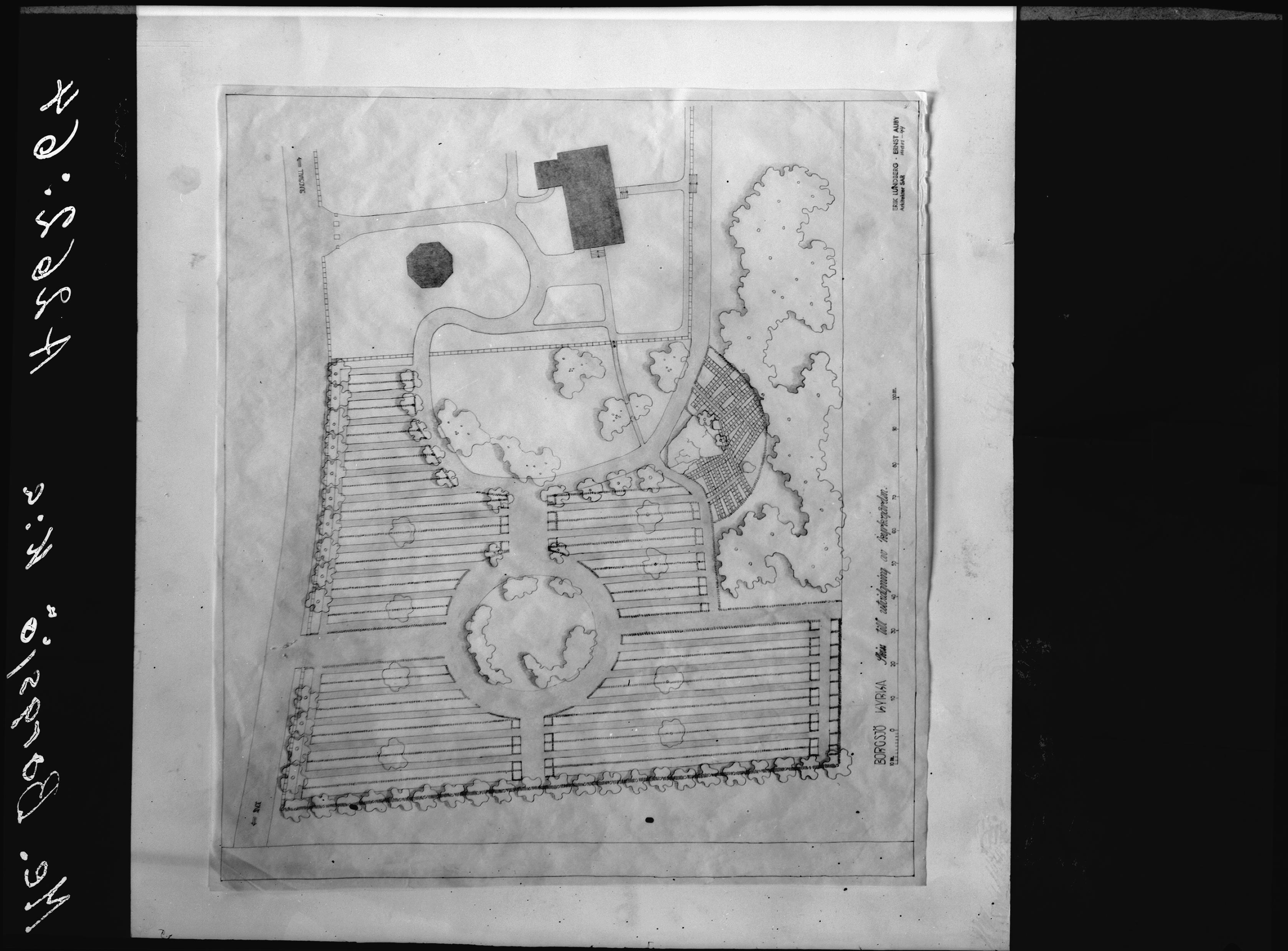 Beskrivning: Situationsplan över kyrkan och kyrkogården.