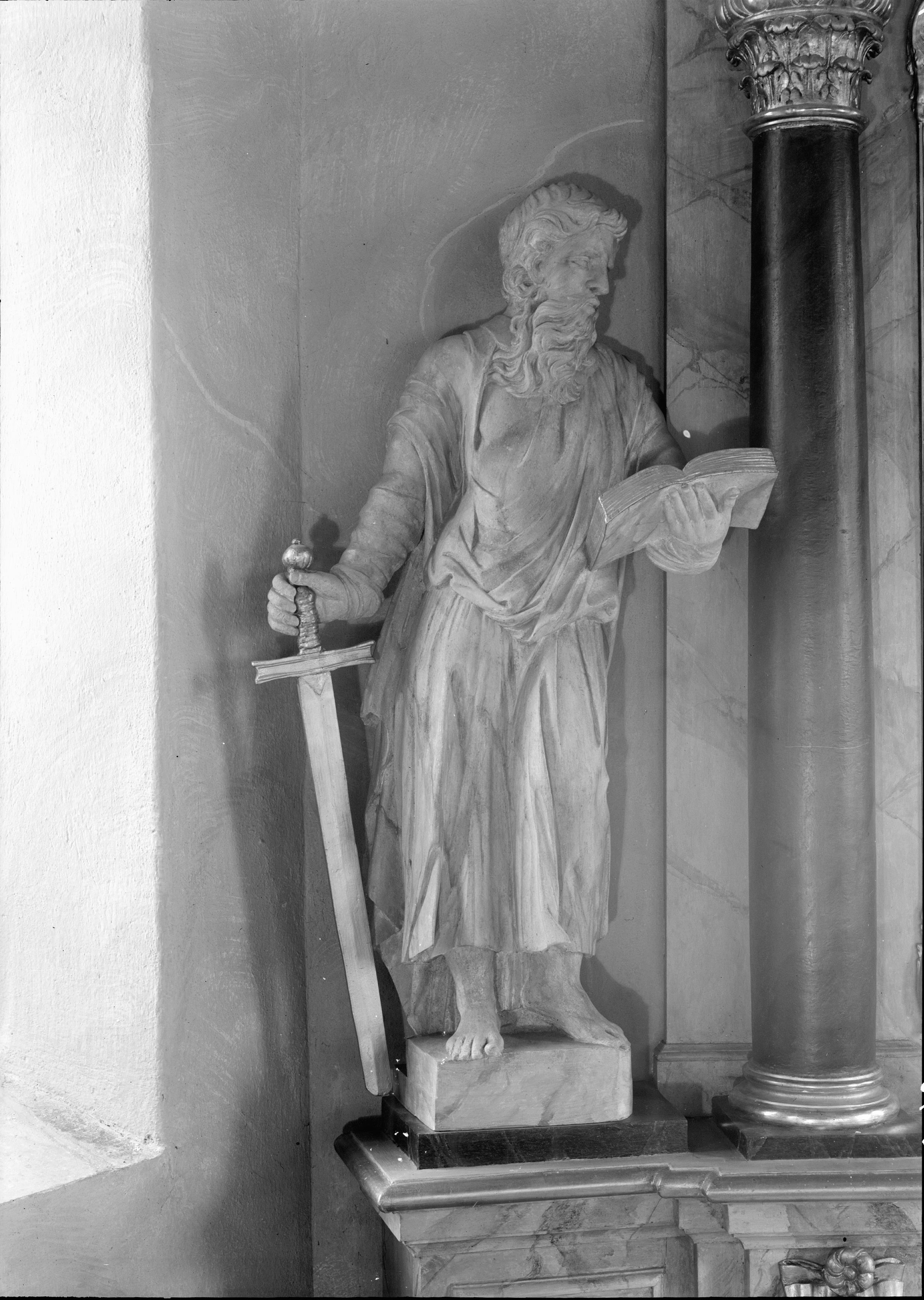 Beskrivning: Altaret, skulptur, Paulus.