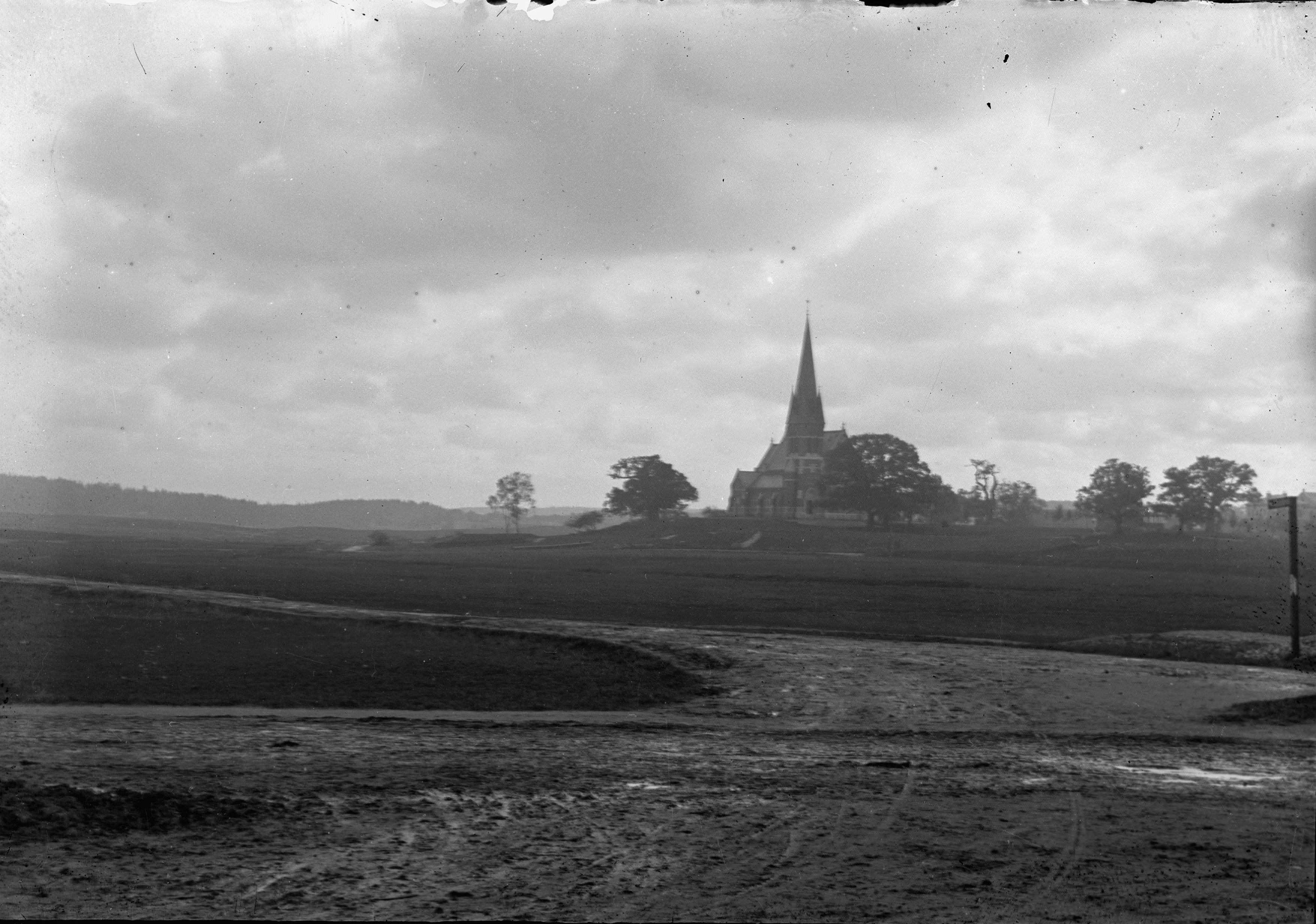Beskrivning: Kyrkan och dess omgivning mot nordväst.