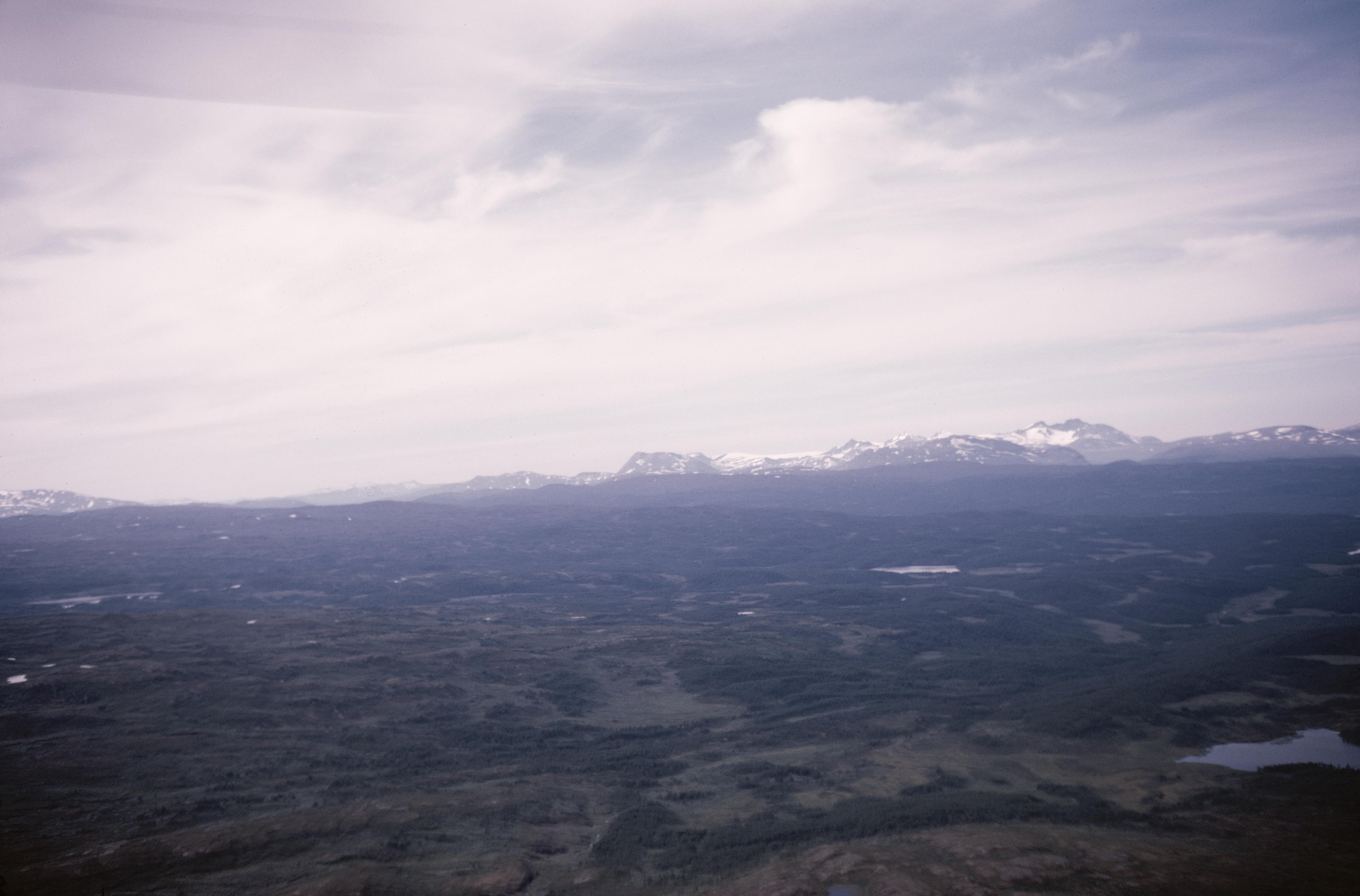 Beskrivning: Fjällområden öster om byn Laisaliden och Umeälvens dalgång (längs bildens mitt). Nere till höger sjön Nolhpenjaavretje och till höger renvall RAÄnr Tärna 250:1. I bildens övre del fjällområdet Gieravardo (Gierevaartoe). (NB! Bildmotivet är något osäkert, det kan vara ett annat område söder om Hemavan). Bilden är tagen mot (väderstreck): NV