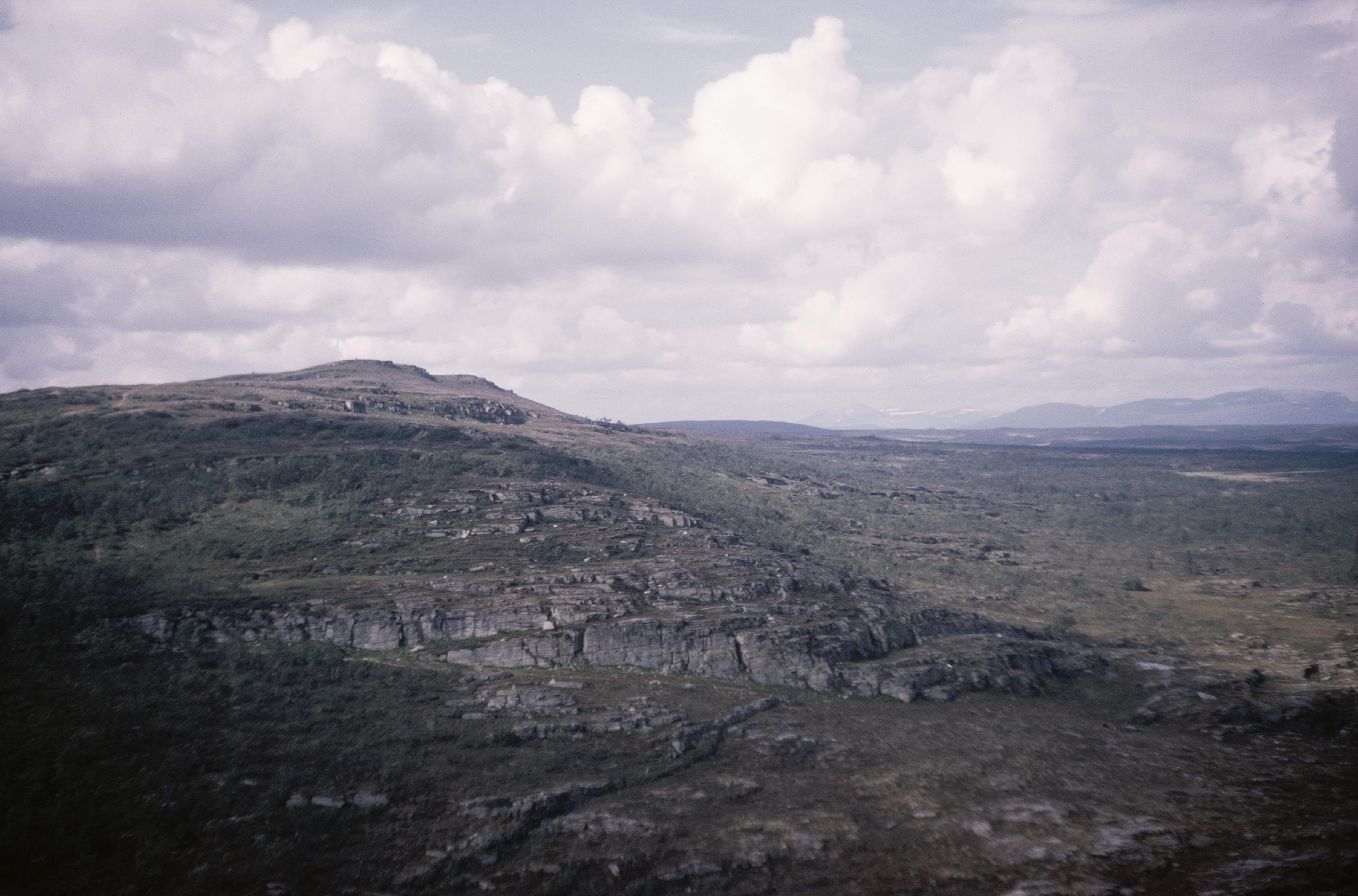 Beskrivning: Anmärkning (övrig): Riksintresse-nr/namn: Z53 - Ruändan. Socken: Hede, Ljusnedal <Tannäs> och Storsjö. Motivering: Hällbildsmiljö med en av Sveriges största och figurrikaste hällmålningslokaler, belägen på en lodrät bergvägg högt uppe på lågfjället Flatruets östra sida med vidsträckt utsikt över landskapet. (Fångstmiljö, Kognitiv miljö). - Uttryck för riksintresset: Hällmålningslokalen består av ett 20-tal figurer föreställande bl.a. älg, ren, björn och människa. Inom miljön finns även sju fångstgropslokaler samt de sägenomspunna naturformationerna Evagraven och Fiskhålsgraven. - I området ingår även: Fäbodvallen Ruvallen med i huvudsak ursprungligt byggnadsbestånd. [Texten uppdaterat av Riksantikvarieämbetet (…) Texten i detta fält har förkortats vid migrering till e-arkivet. Se filbilagan extra.xml för fullständig information under note_archivist. Beskrivning: Östra delen av lågfjället Flatruet (Fleete). Uppe till vänster bergstoppen Ruändan (Sjnjaptjegietije). I bergsidan under bildens mitt en lodrätt klippvägg med hällmålningar RAÄnr Tännäs 58:1. Bilden är tagen mot (väderstreck): NV Fotosyfte: Flygbildsdokumentation