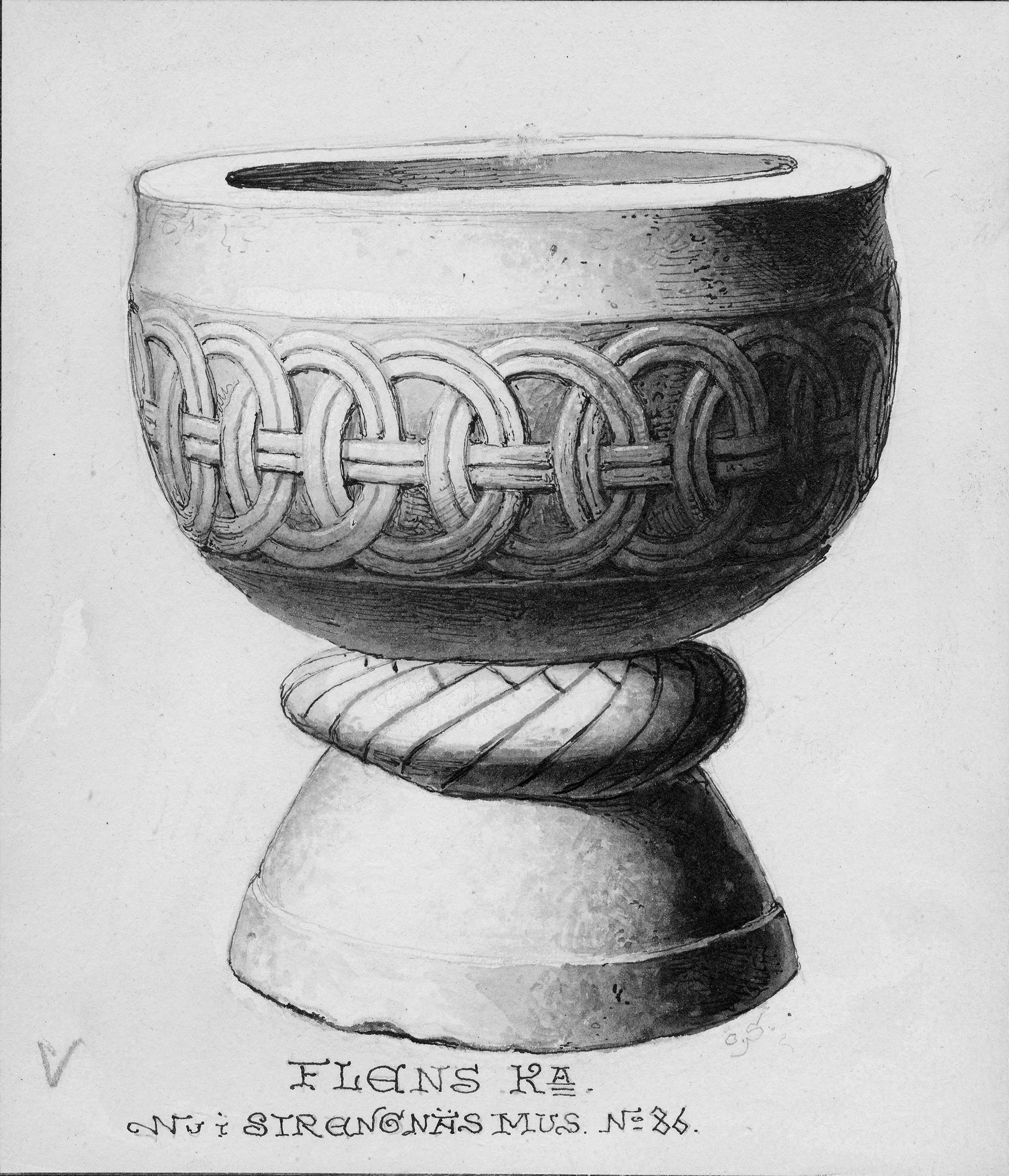 Beskrivning: Dopfunt, 1100-talet, teckning.
