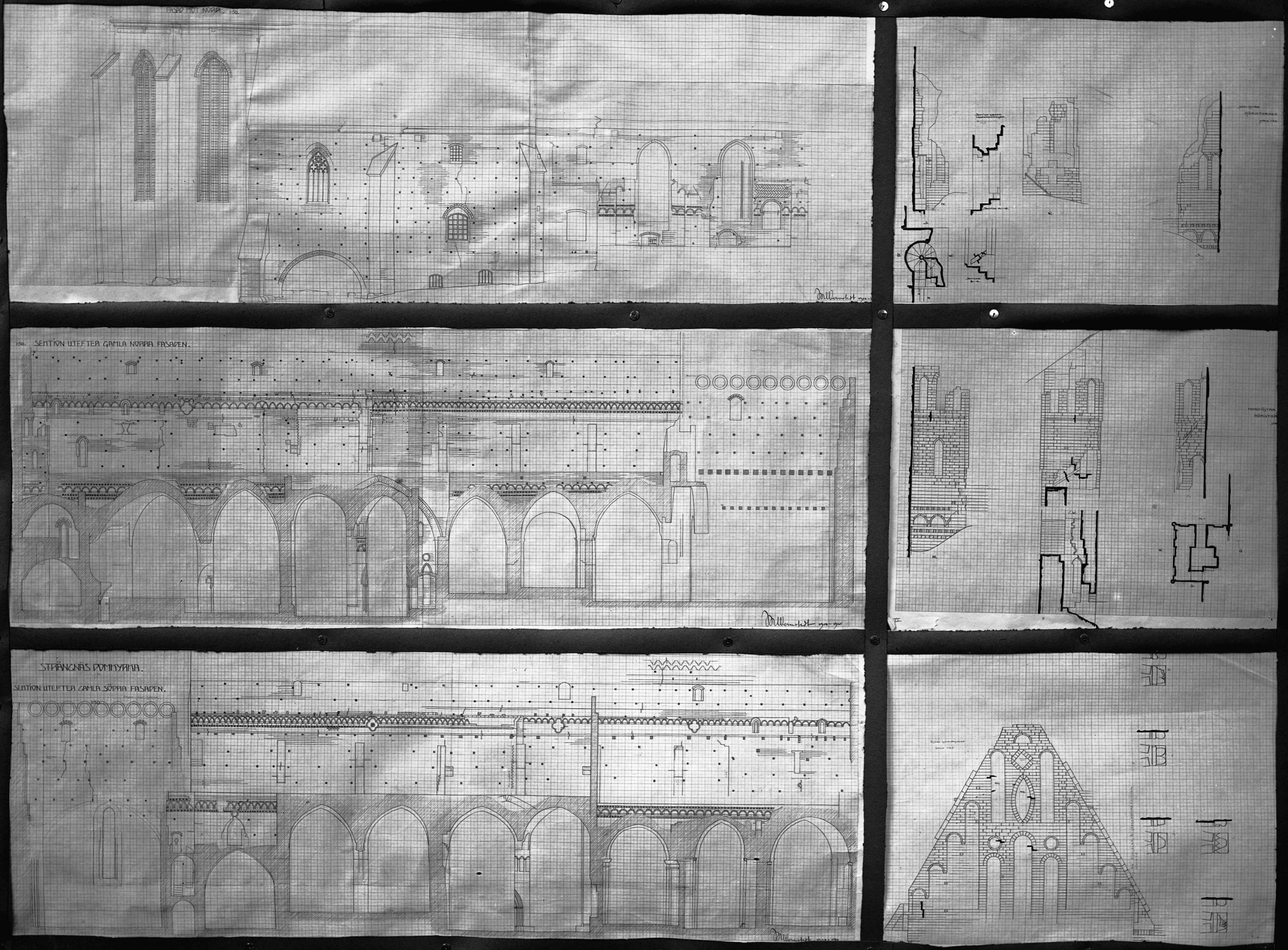 Beskrivning: Ritning över gamla norra och gamla södra fasaden, avfotograferad.