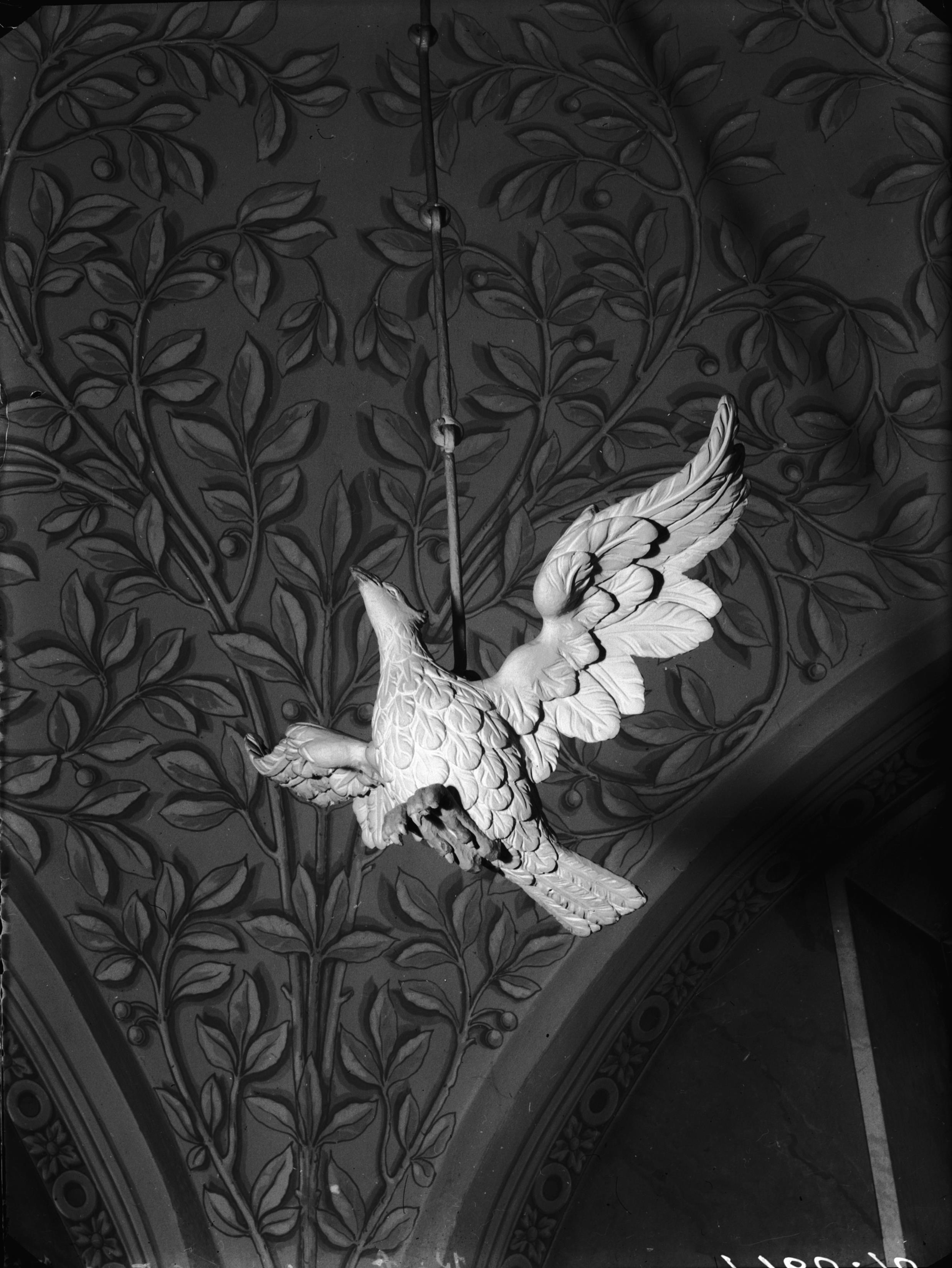 Beskrivning: Duva i doprummet, troligen från gamla altaret.