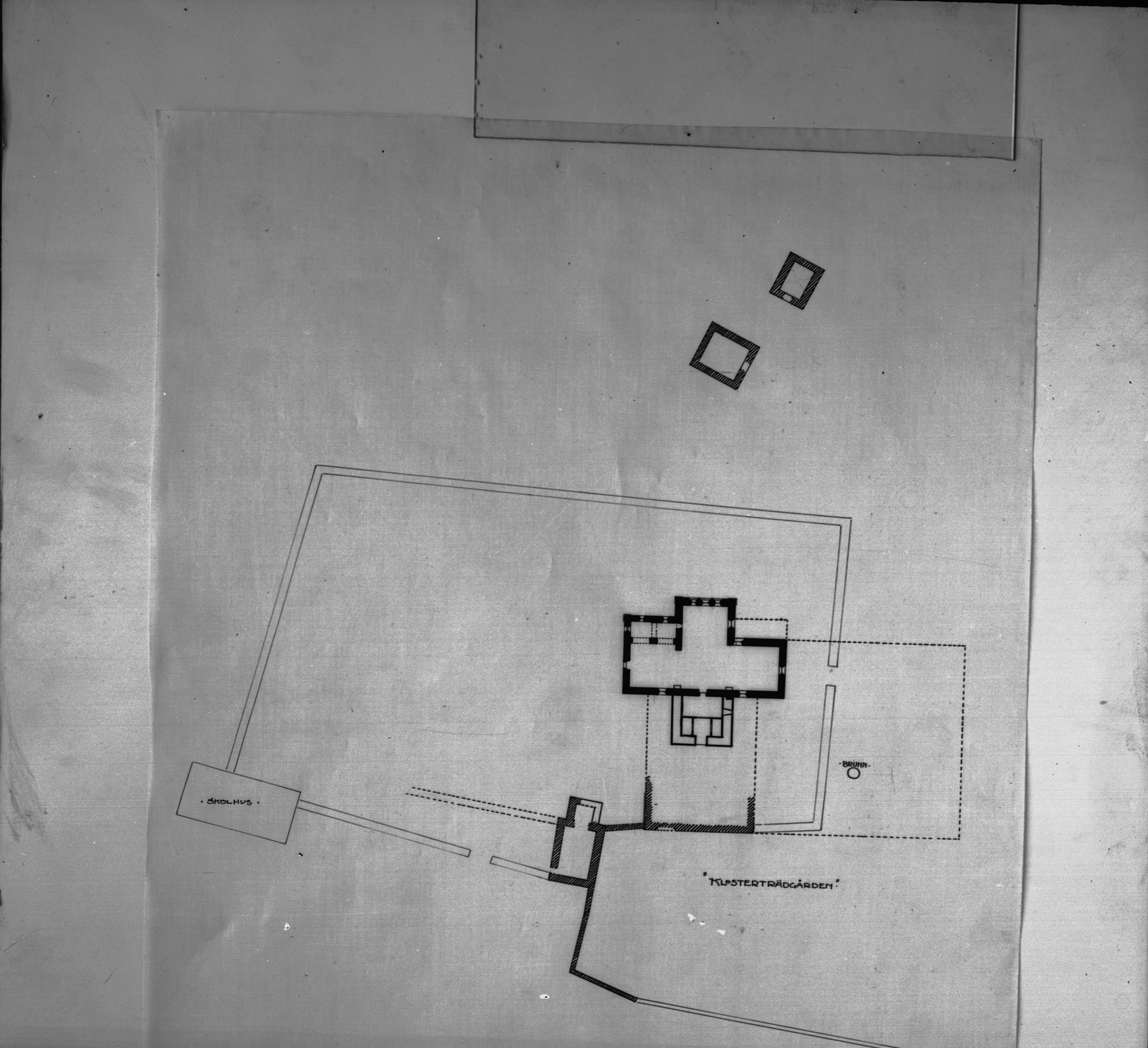 Beskrivning: Planritning över Klosterområdet. Efter ritning.