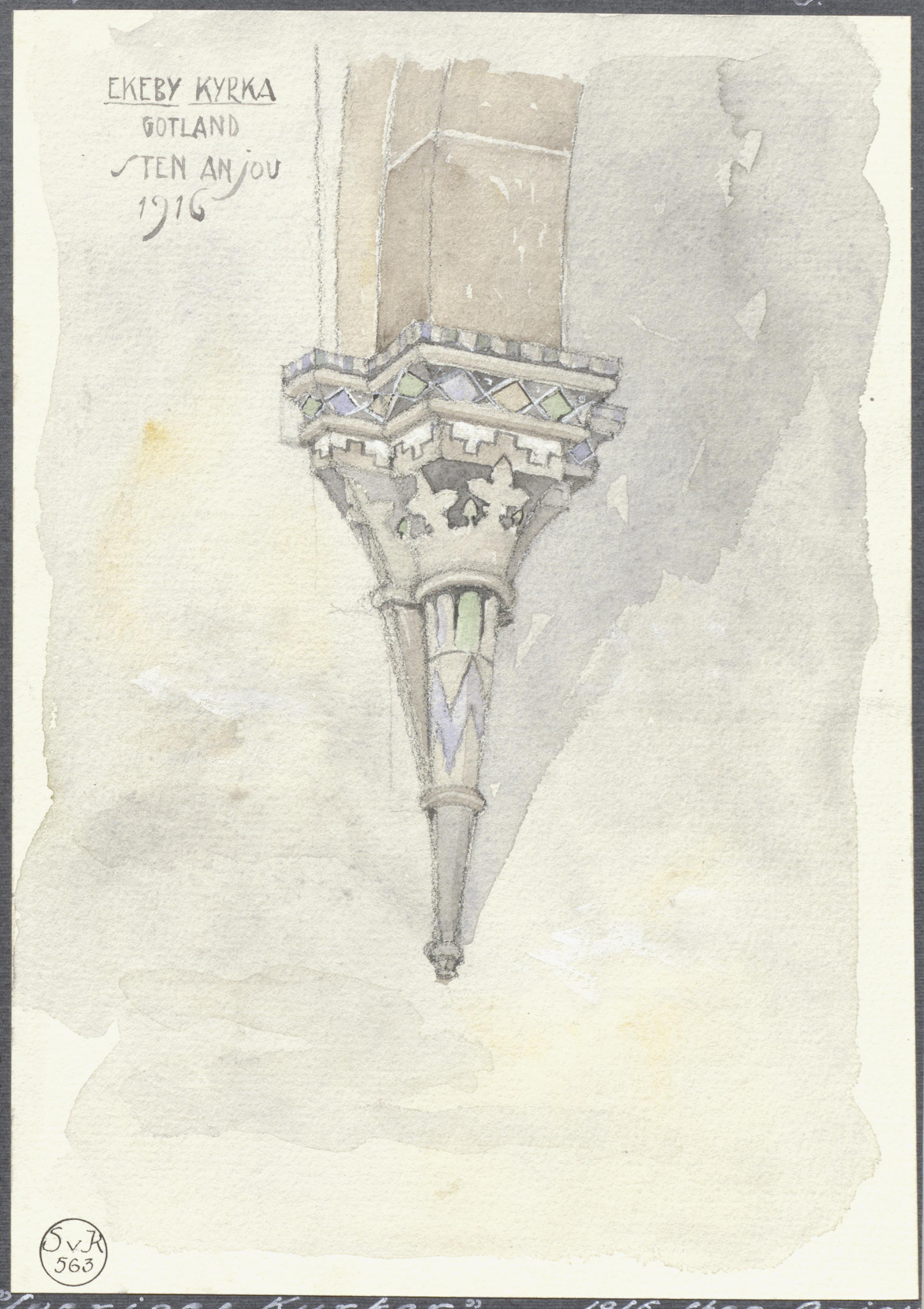 Beskrivning: Anmärkning (övrig): Mått: 17x24 cm. Beskrivning: Konsolsten och valvanfang med färgspår. Akvarell av Sten Anjou, 1916. Fotosyfte: