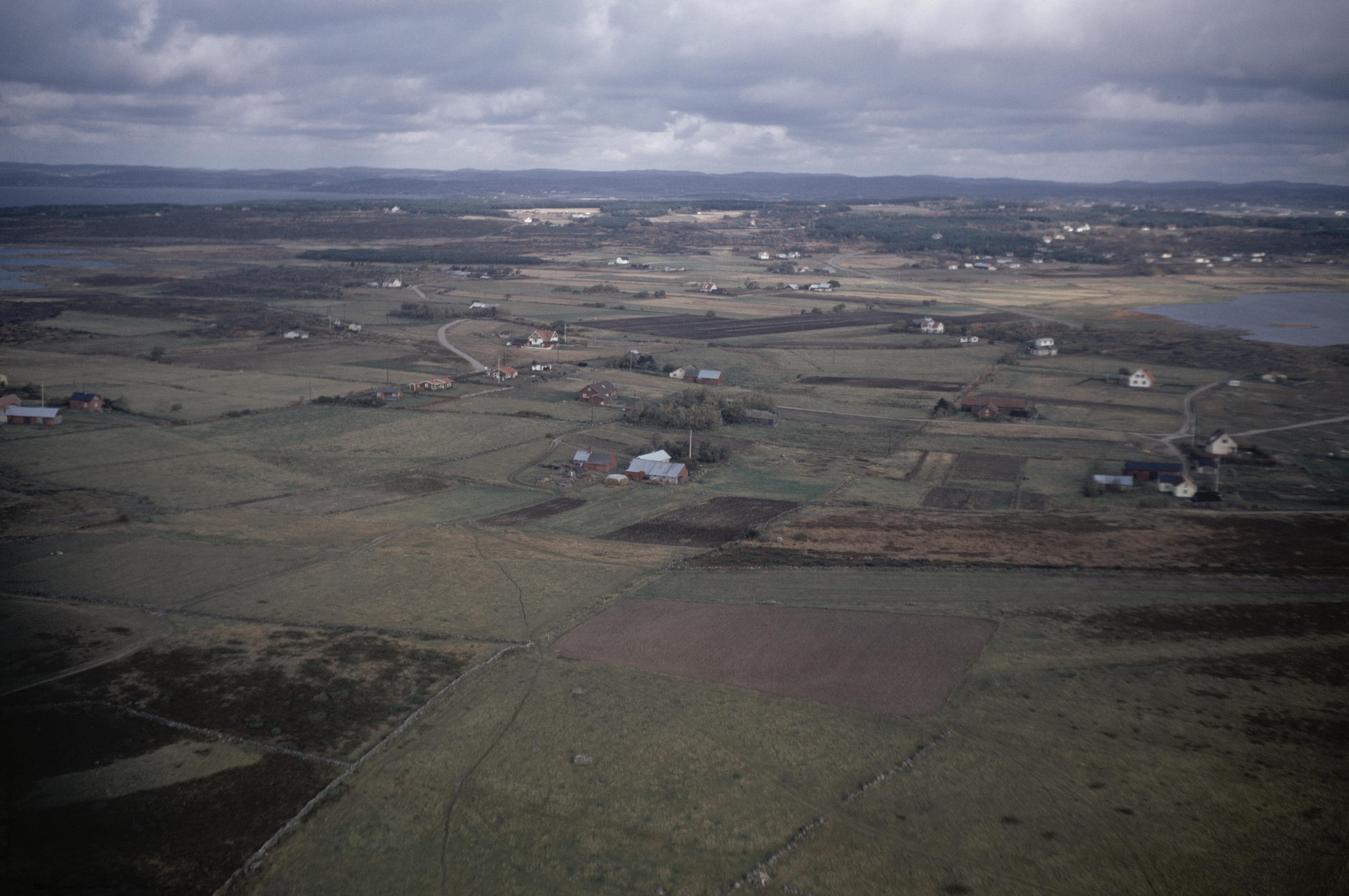 Beskrivning: I bildens nedre del Biskopshagens naturreservat. I bildens övre del Ringhals by med bl.a. boplats RAÄnr Värö 375 mellan gårdarna Börslund och Attes. Bilden är tagen mot (väderstreck): OSO