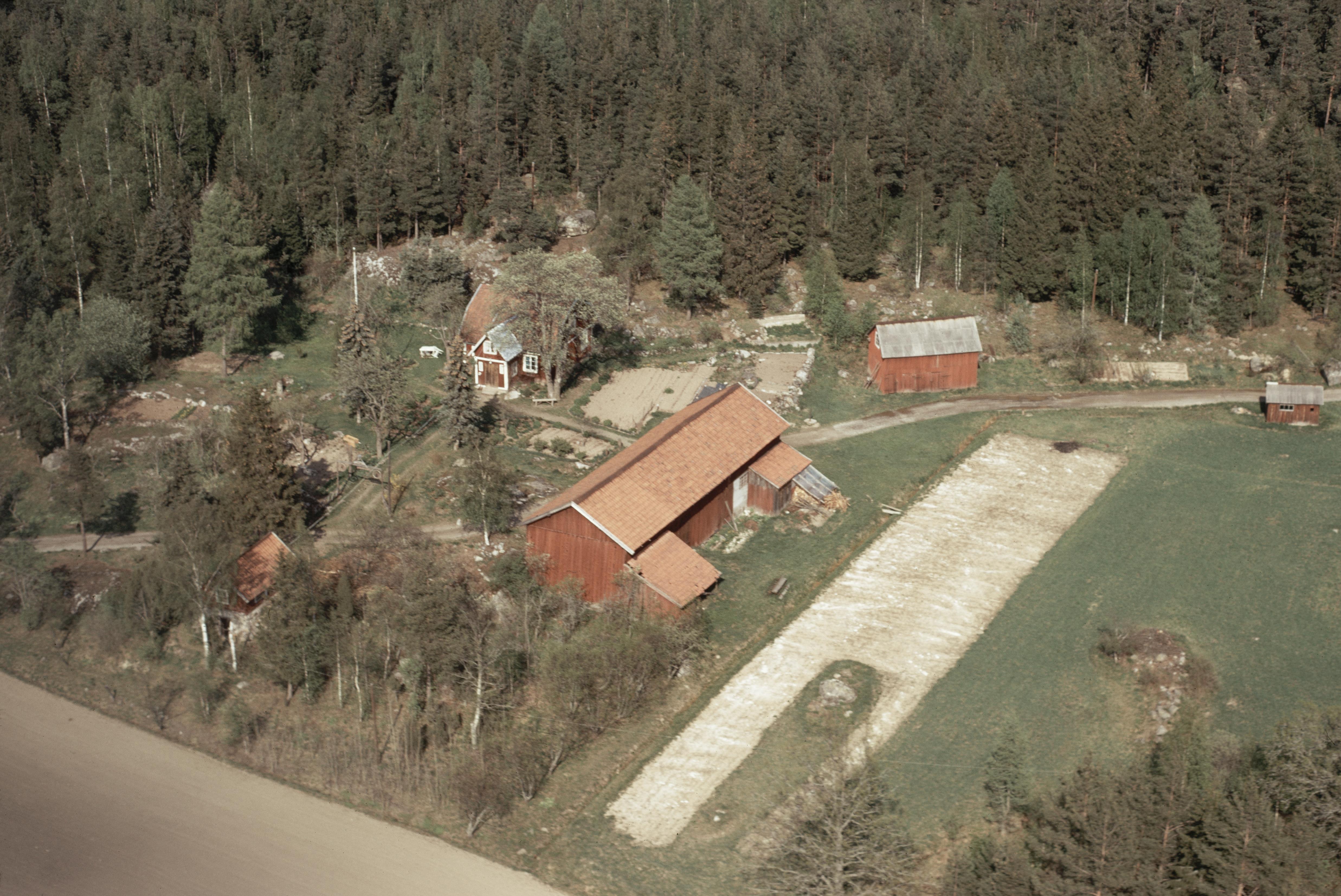 Beskrivning: Hasselbacken gård. I skogen uppe till vänster område med hägnad RAÄnr Dingtuna 546:1. Bilden är tagen från (väderstreck): NO