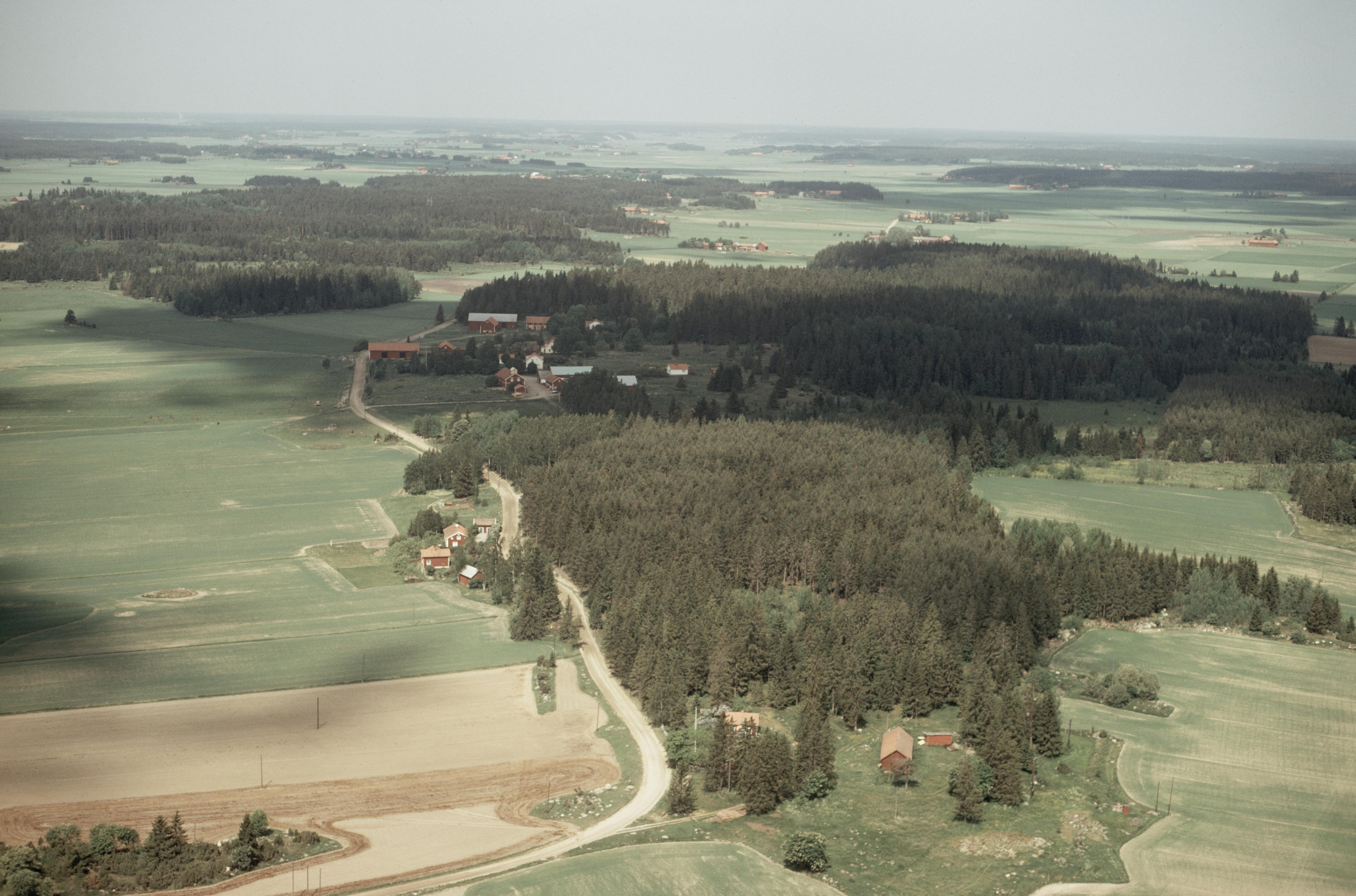 Beskrivning: Kälsta by. Vid bildens mitt gravfält Trestensbacken RAÄnr Litslena 41:1. Bilden är tagen mot (väderstreck): NV