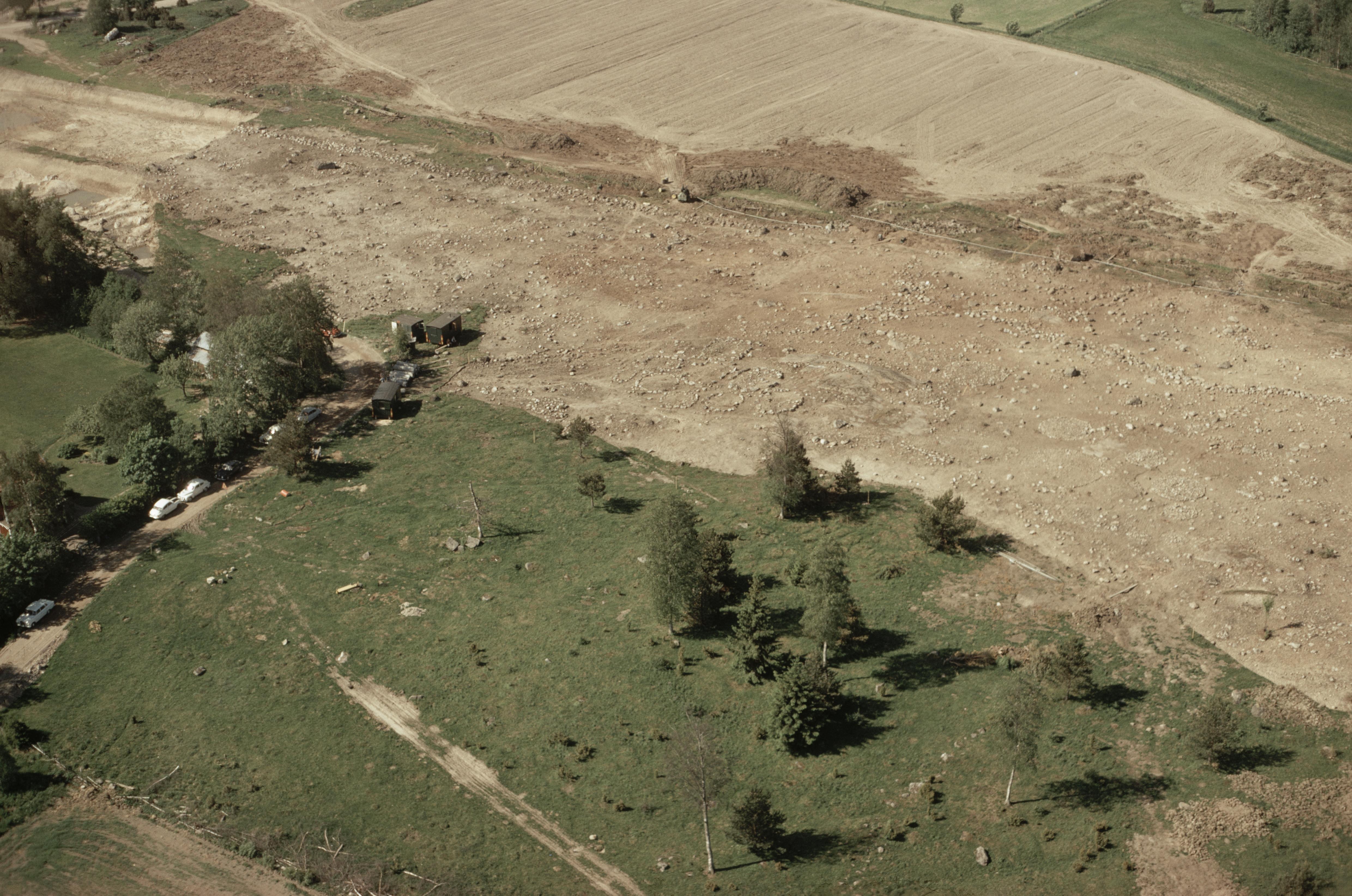 Beskrivning: Arkeologisk undersökning av gravfält RAÄnr Husby-Ärlinghundra 205 innan vägbygge. Bilden är tagen mot (väderstreck): SV