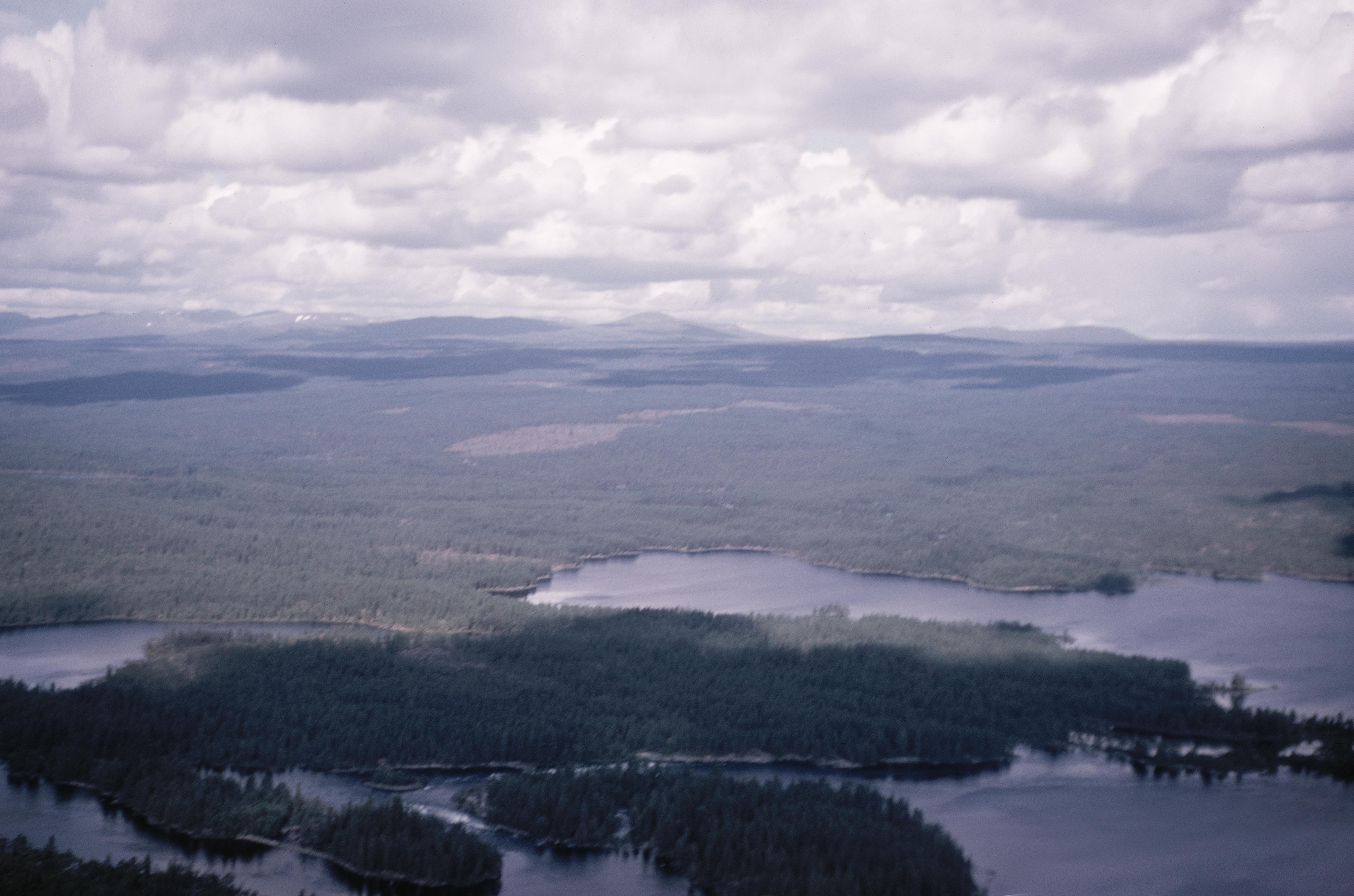 Beskrivning: Sundet Ljunghålet i sjön Grucken, mellan Över-Grucken (nere till vänster) och Ytter-Grucken. Vid stranden i bildens mitt boplats RAÄnr Storsjö 23:1. I bildens högra kant gränsen mot socknet Åsarne och landskapet Jämtland. Bilden är tagen mot (väderstreck): NNO