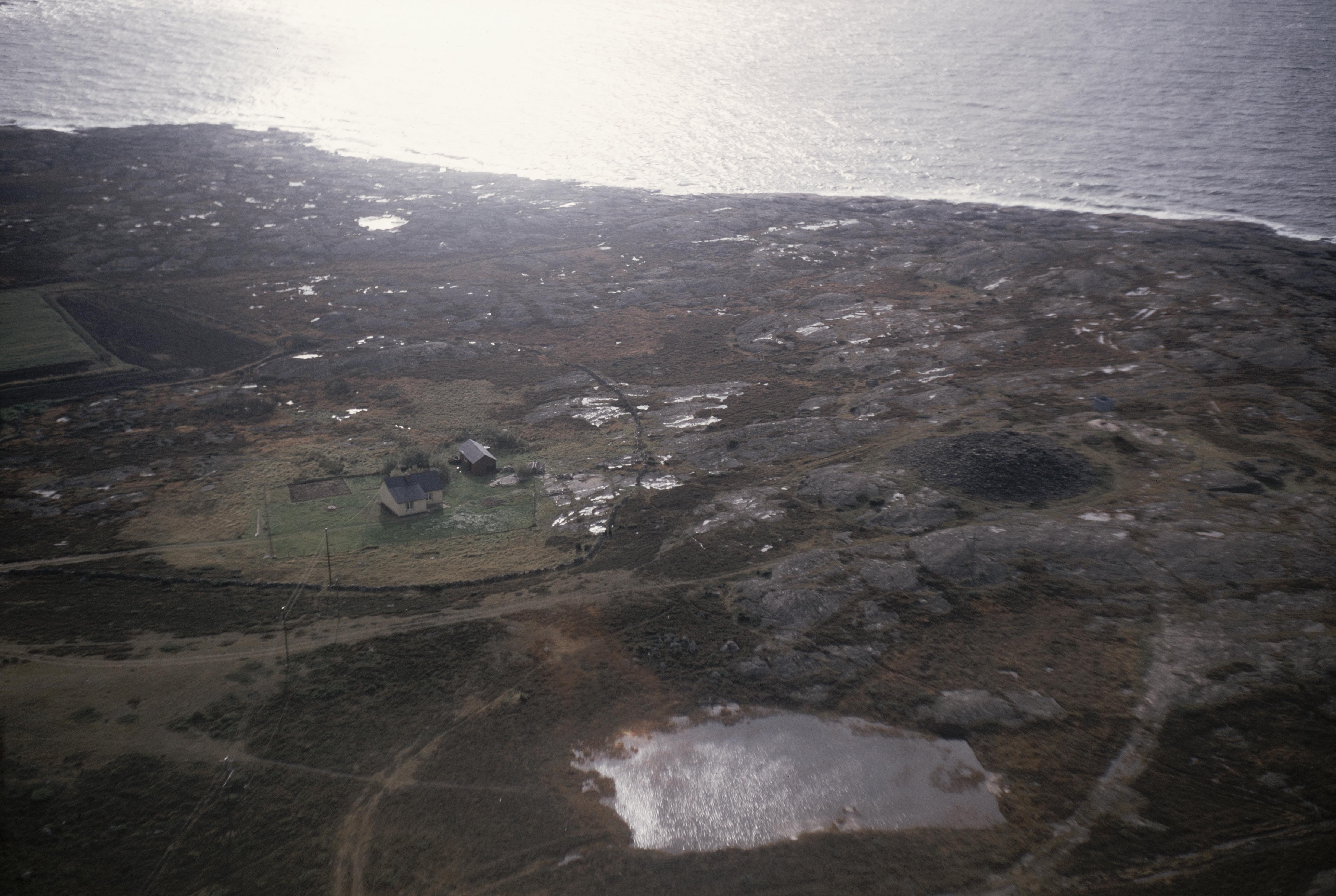 Beskrivning: Röse "Olas Våle" RAÄnr Värö 21:1 m.fl. i Biskopshagens naturreservat vid Ringhals. Kråkstad udde till höger i bildens övre del. Bilden är tagen mot (väderstreck): SV