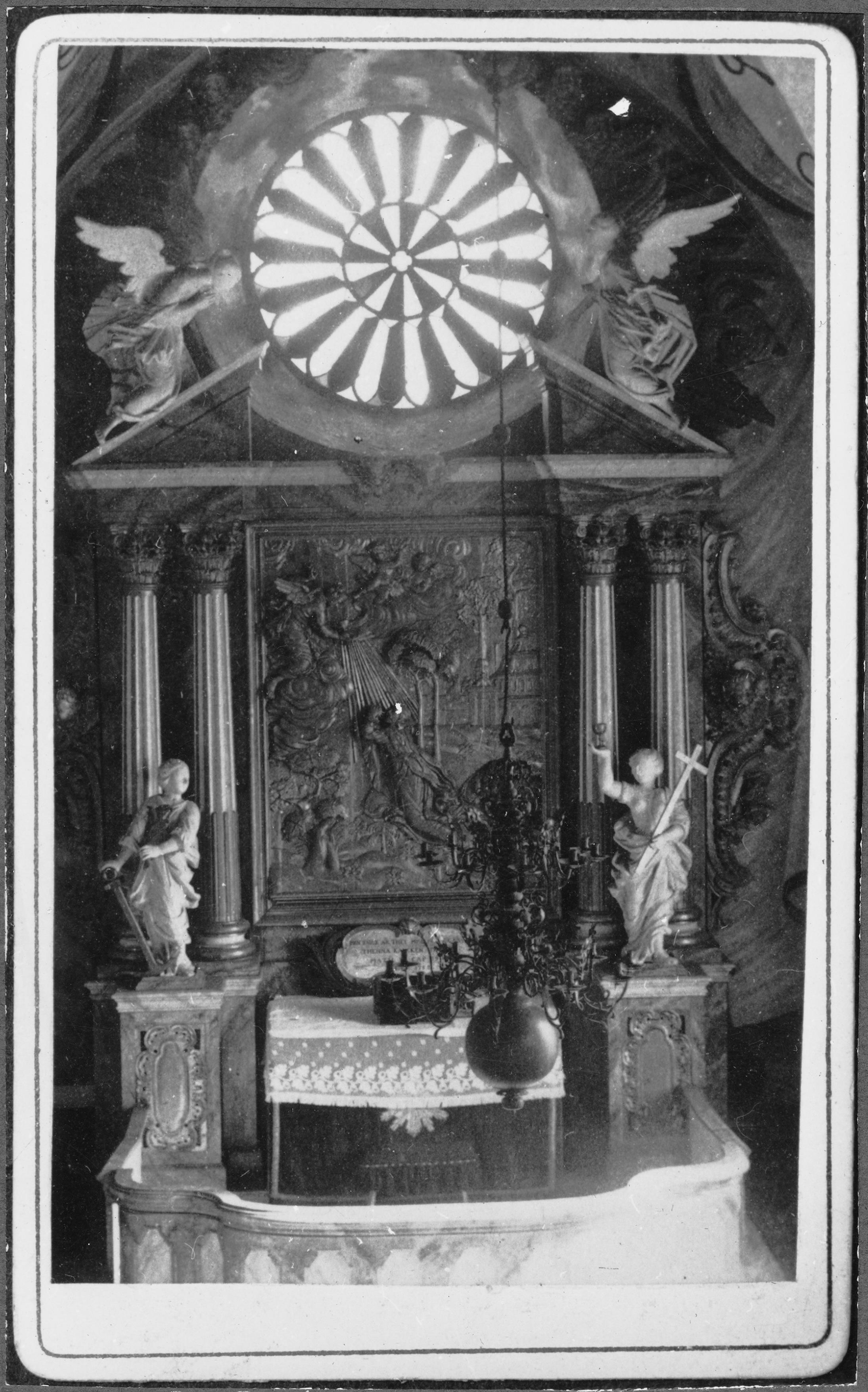 Beskrivning: Altaret och altarringen. Bilden en gåva av E. Unnerbäck 1960.