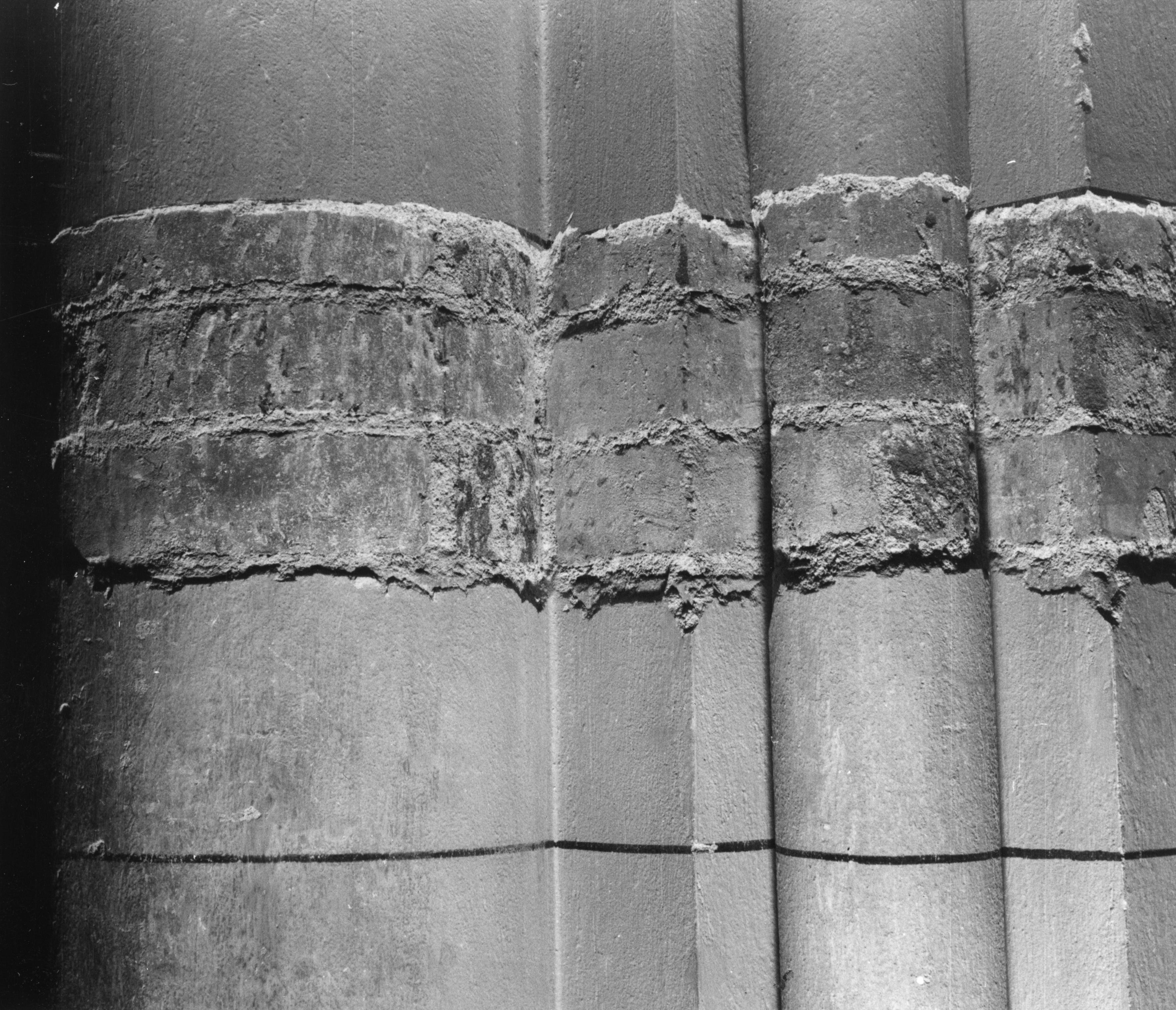 Beskrivning: Bilaga till restaureringsförslag av domkyrkoarkitekten Åke Porne, Uppsala, mars 1967. Punktvisa undersökningar av puts. Södra sidoskeppet. Valv 51. Södra arkaden. Sydvästra arkadsmygen.