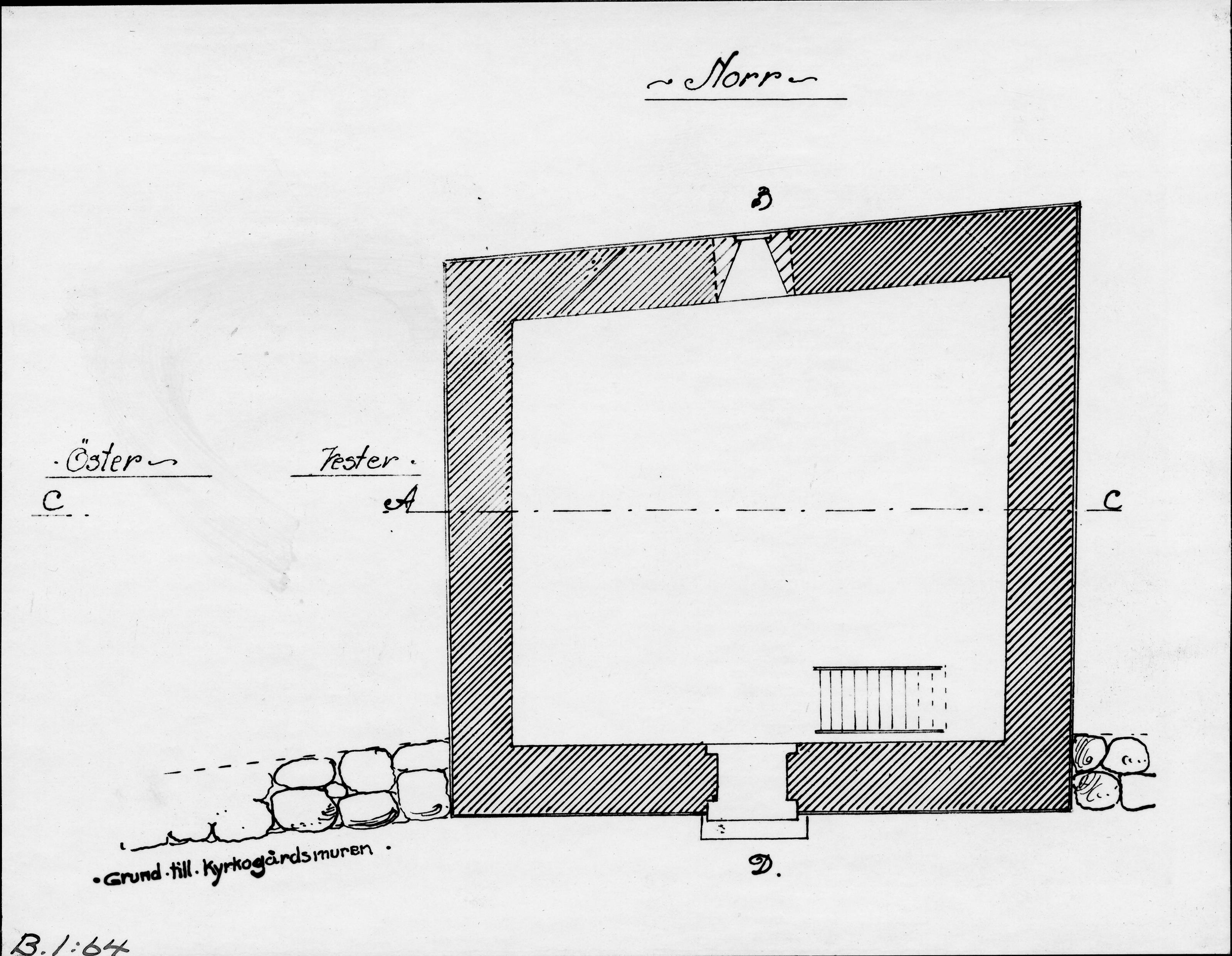Beskrivning: Medeltida stenhuset (tiondeboden), plan. Uppmätning av Sigurd Curman. Avfotograferad.