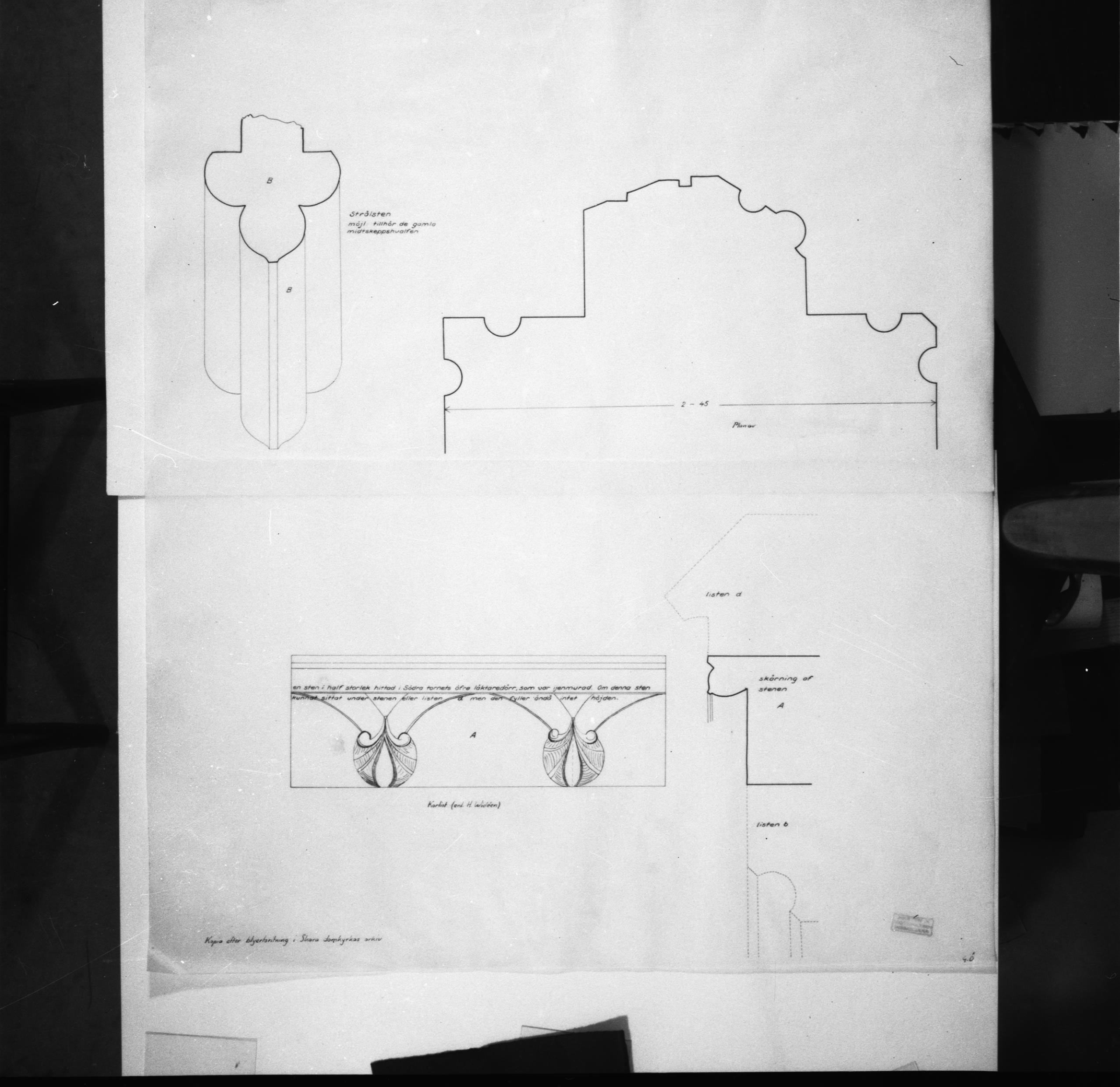 Beskrivning: Skulpterad sten. Foto efter ritning.