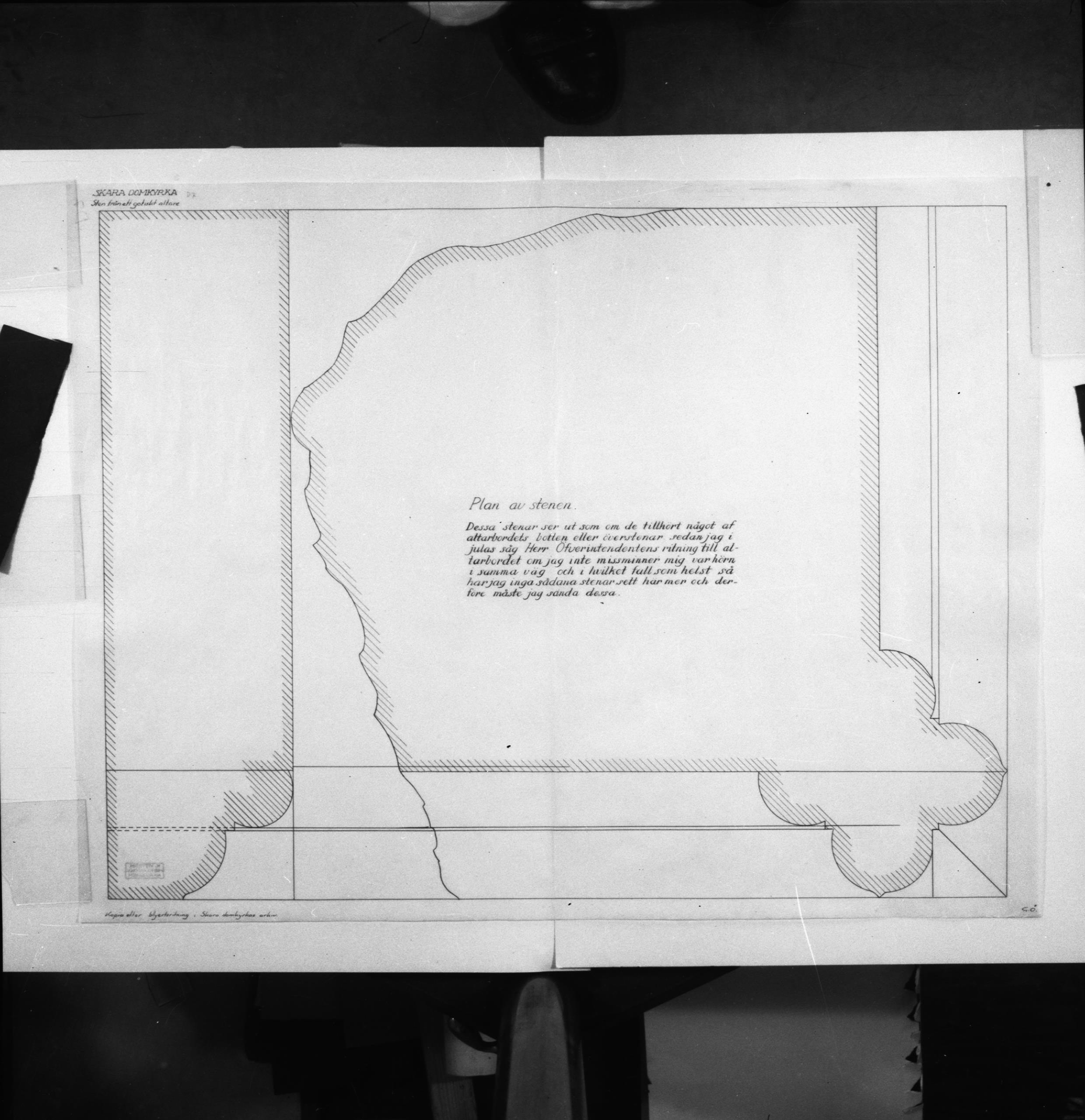Beskrivning: Sten från gotiskt altare. Foto efter teckning.
