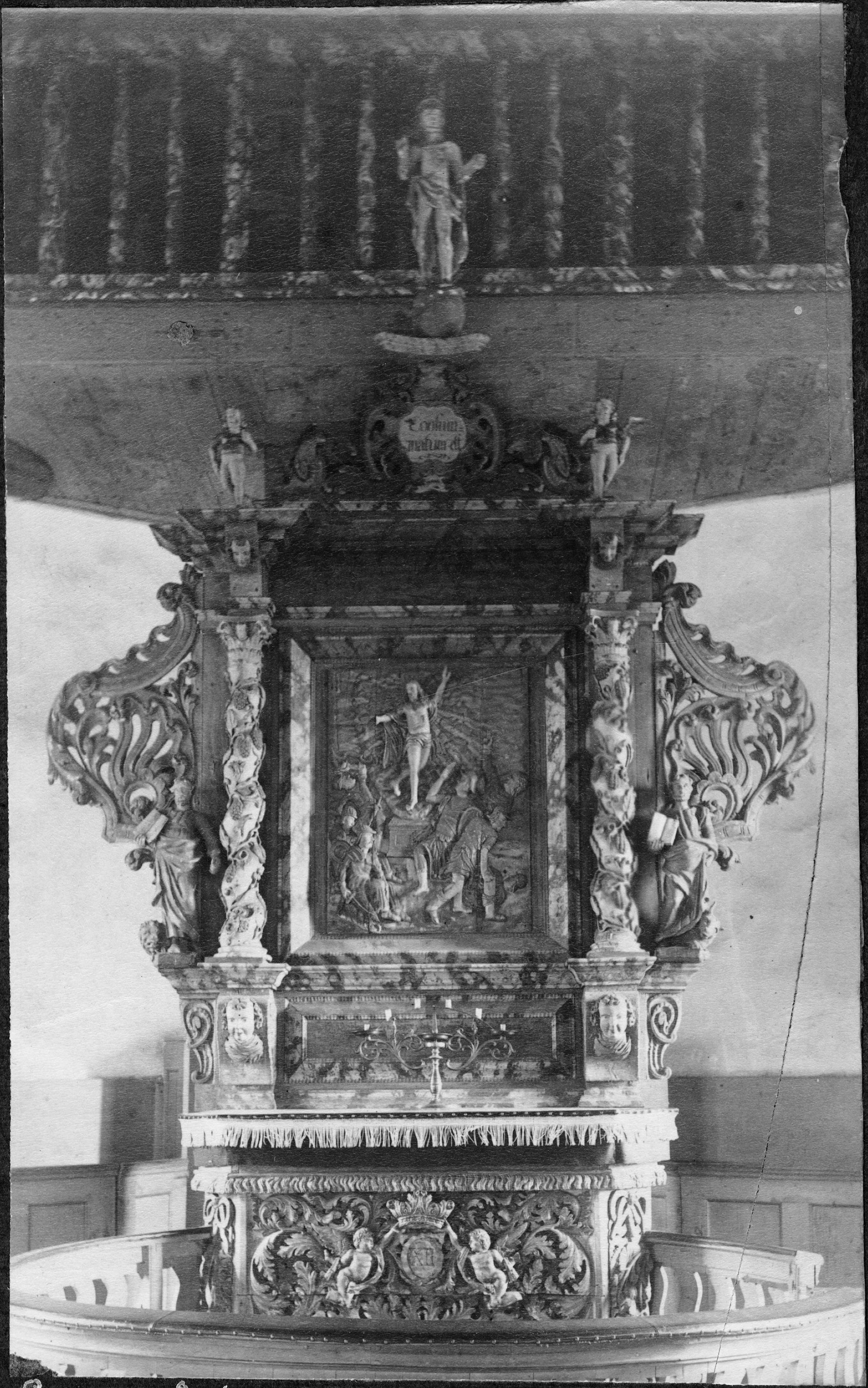 Beskrivning: Altare med altaruppsats från 1600-talet.