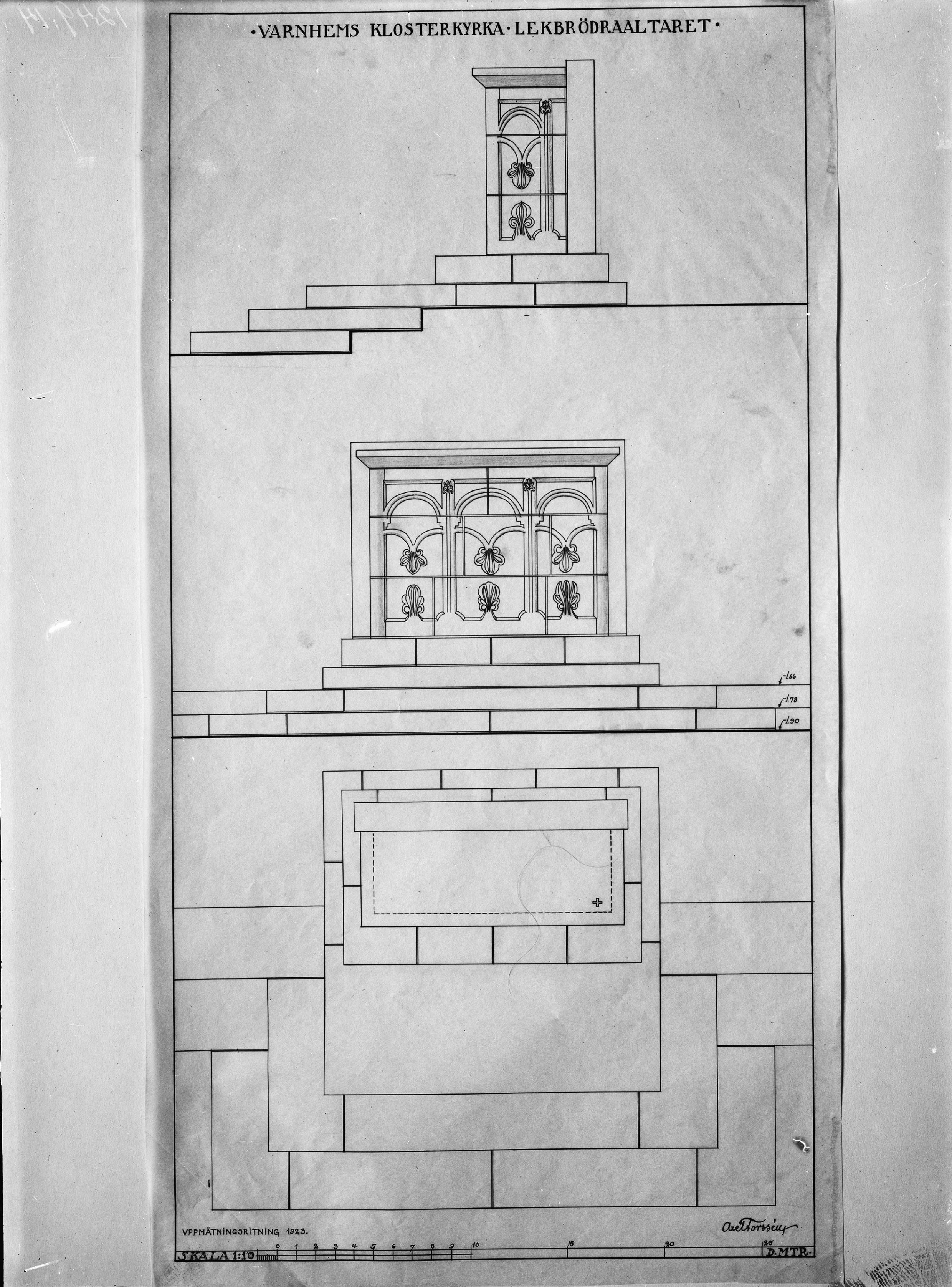 Beskrivning: Ritning av Axel Forssén, lekbrödraaltaret, avfotograferad.