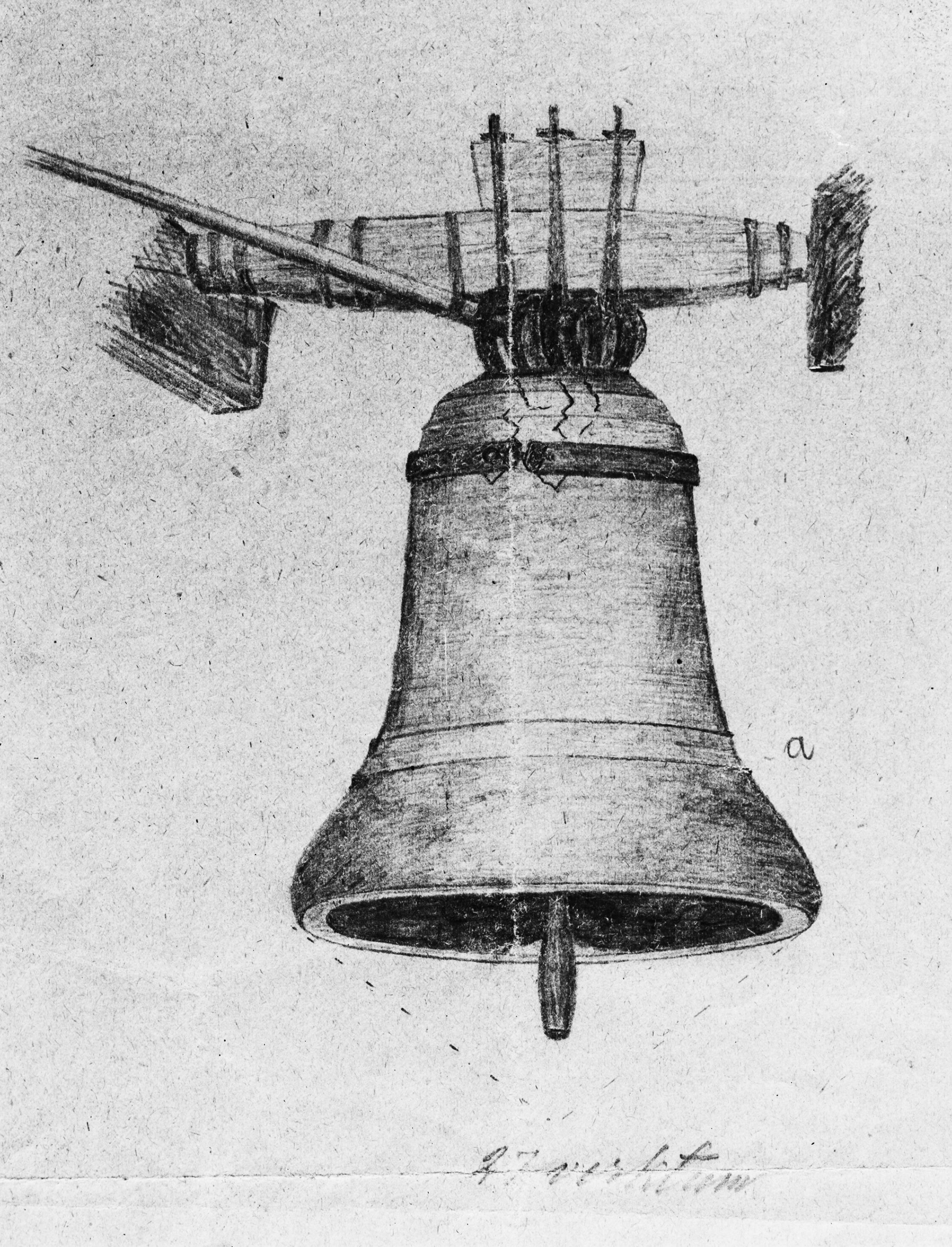 Beskrivning: Kyrkklocka. Foto efter teckning.