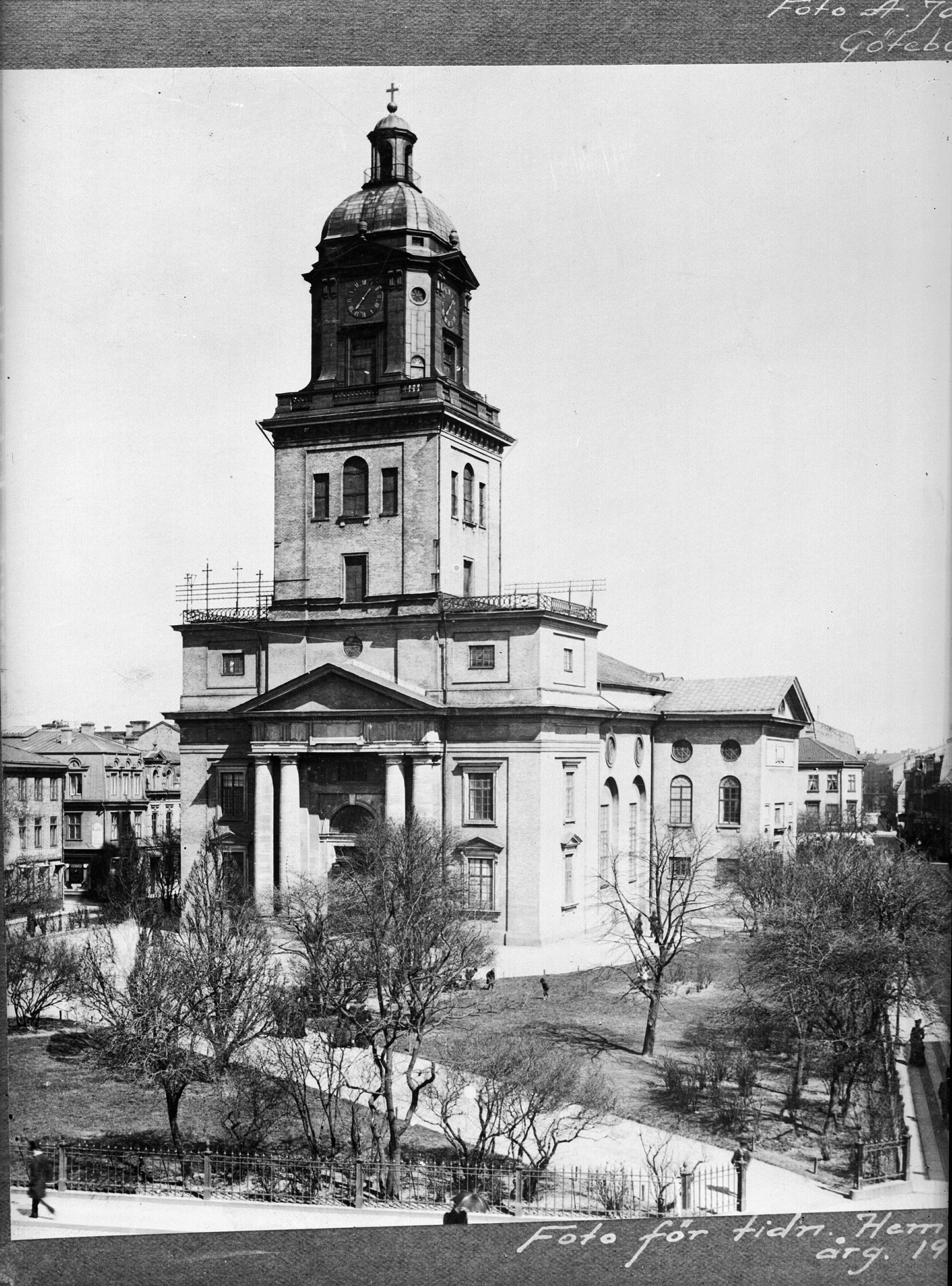 Beskrivning: Kyrkan från sydväst. Foto för tidningen Hemmet.