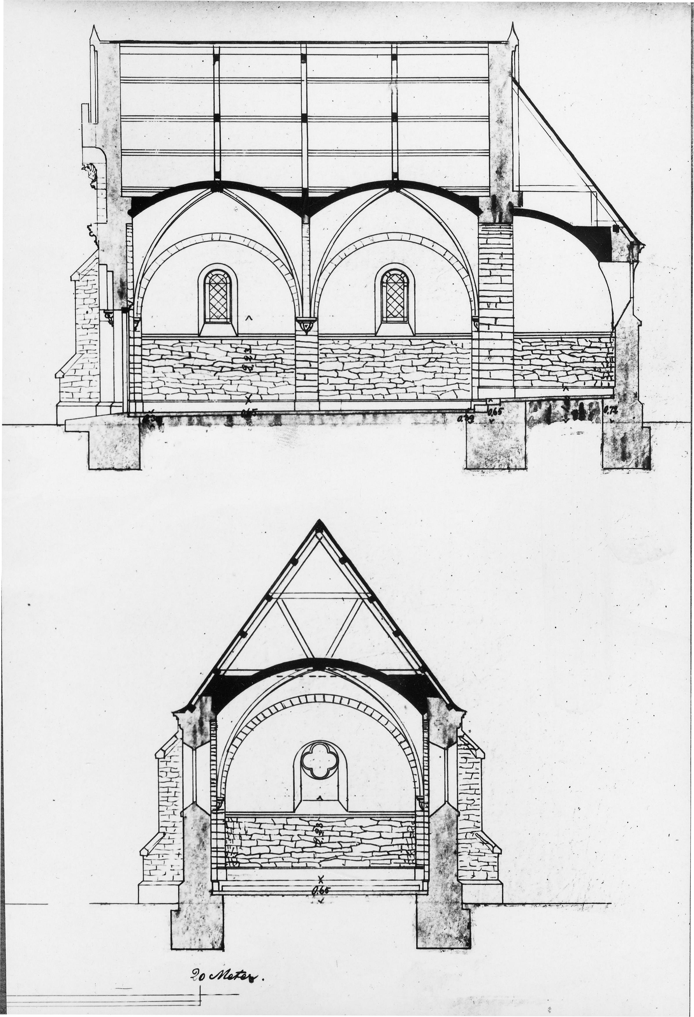 Beskrivning: Tvärsnitt och genomskärning. Foto efter ritning.