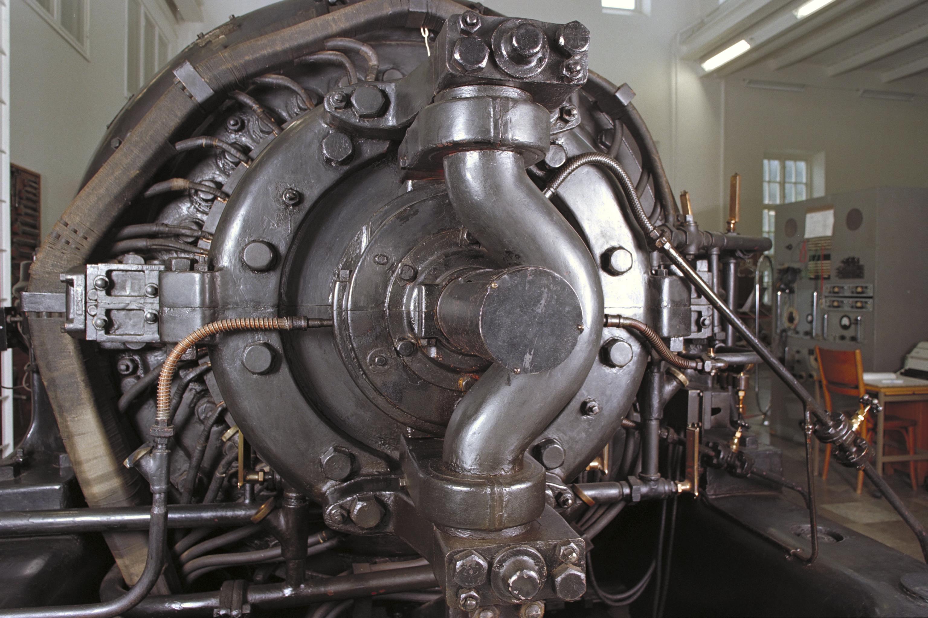 200 kW Alexandersongenerator sedd från sidan med uppsamlingskablar samt anordning för centrering av generatorrotor.