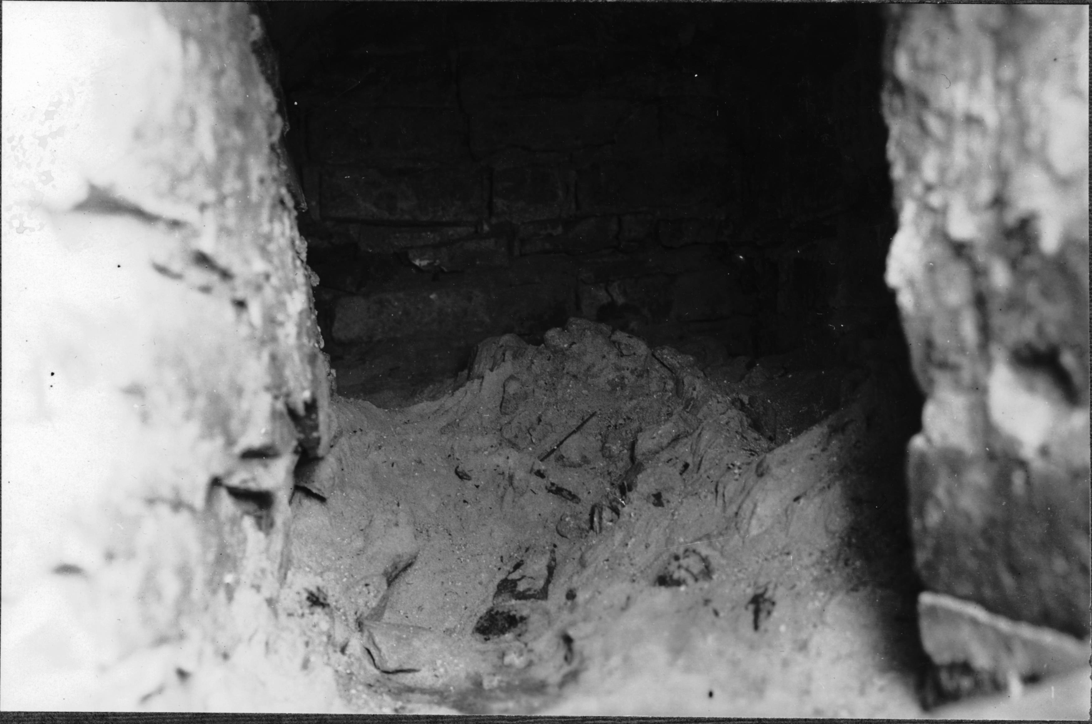 Beskrivning: Invändigt i rummet under altaret. Foto från ingången.