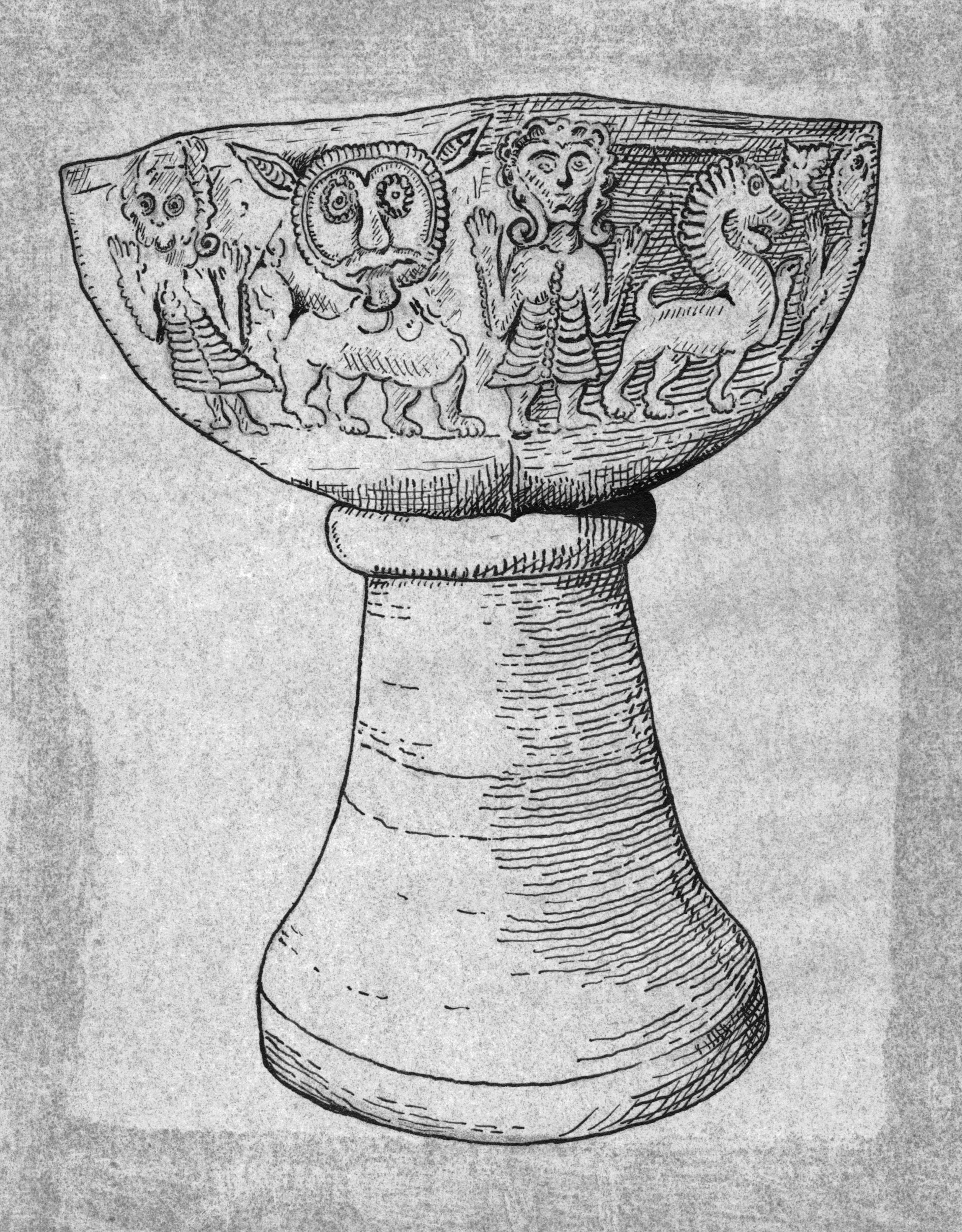 Beskrivning: Dopfunt. Teckning.