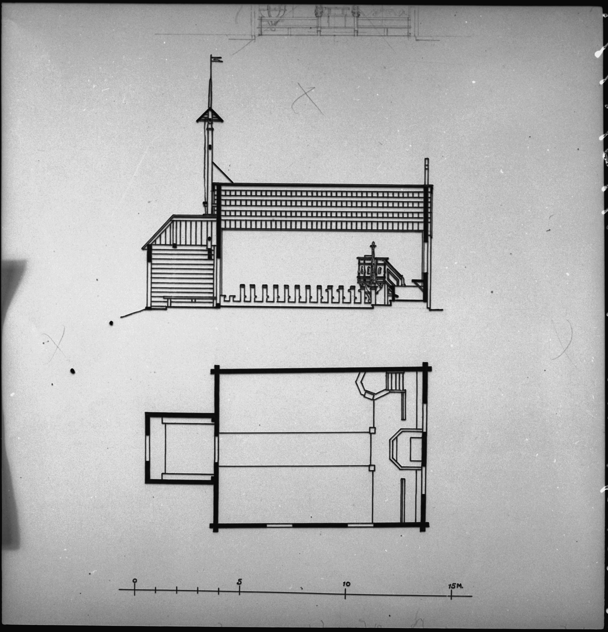 Beskrivning: Foto av ritning av kyrkan. Folke Bensow, 1912.