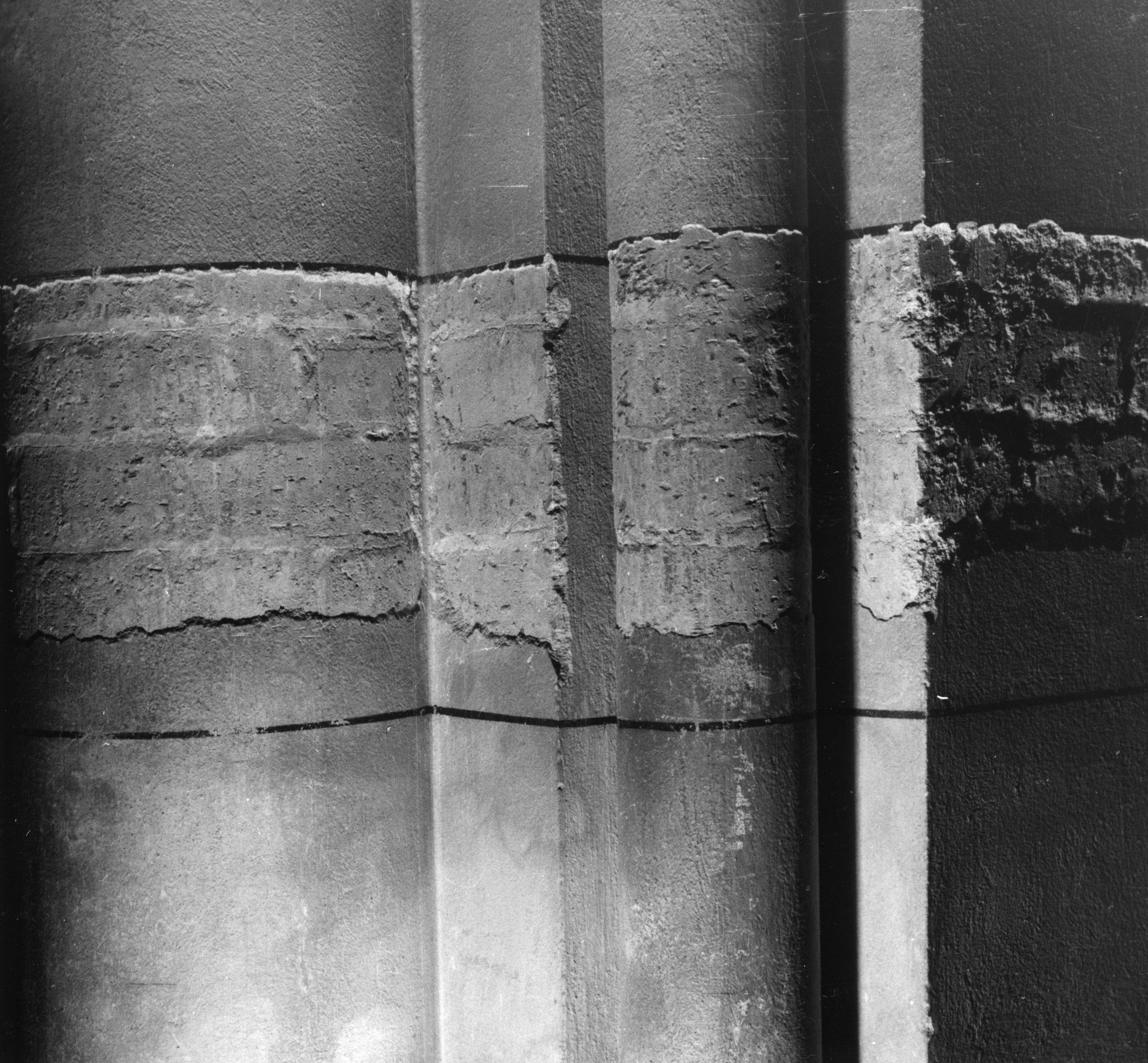 Beskrivning: Bilaga till restaureringsförslag av domkyrkoarkitekten Åke Porne, Uppsala, mars 1967. Punktvisa undersökningar av puts. Södra sidoskeppet. Transeptet. Valv 50. Södra arkaden. Sydöstra arkadsmygen.