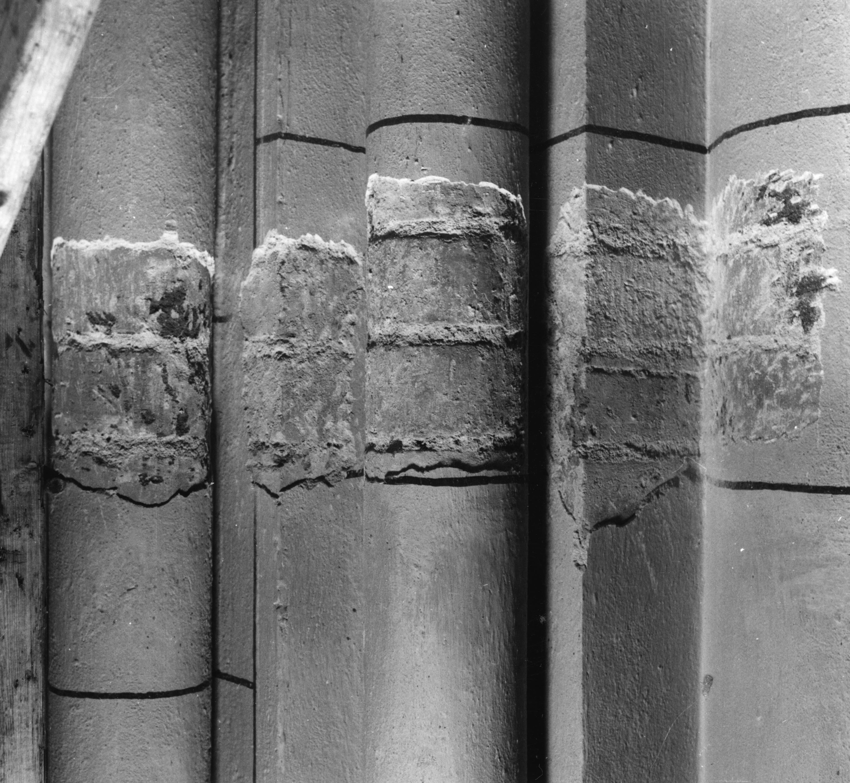 Beskrivning: Bilaga till restaureringsförslag av domkyrkoarkitekten Åke Porne, Uppsala, mars 1967. Punktvisa undersökningar av puts. Södra kapellsviten. Valv 23. Nordvästra knekten samt arkaden, nordvästra arkadsmygen.