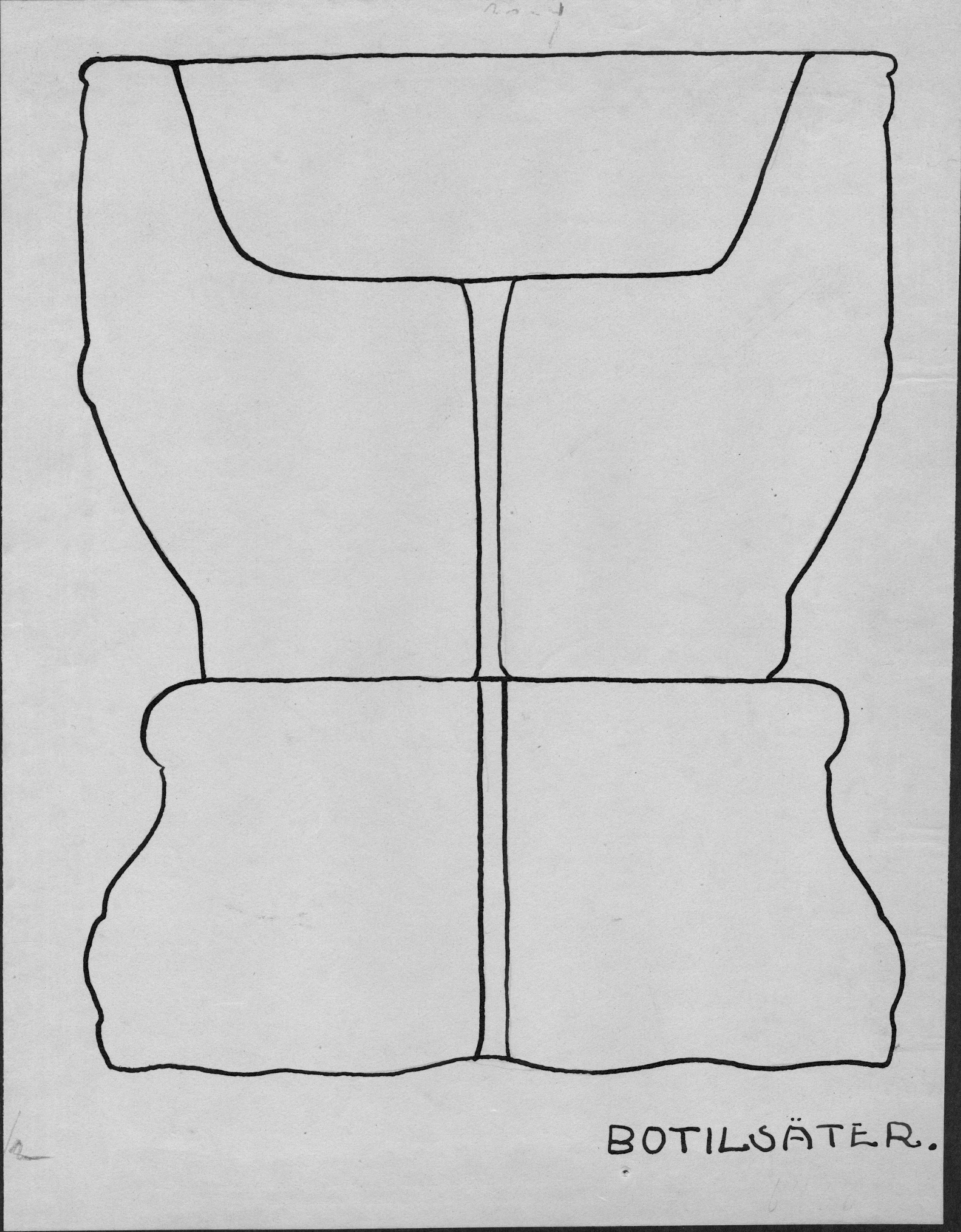 Beskrivning: Dopfunt, medeltida. Teckning av Gustaf Munthe.