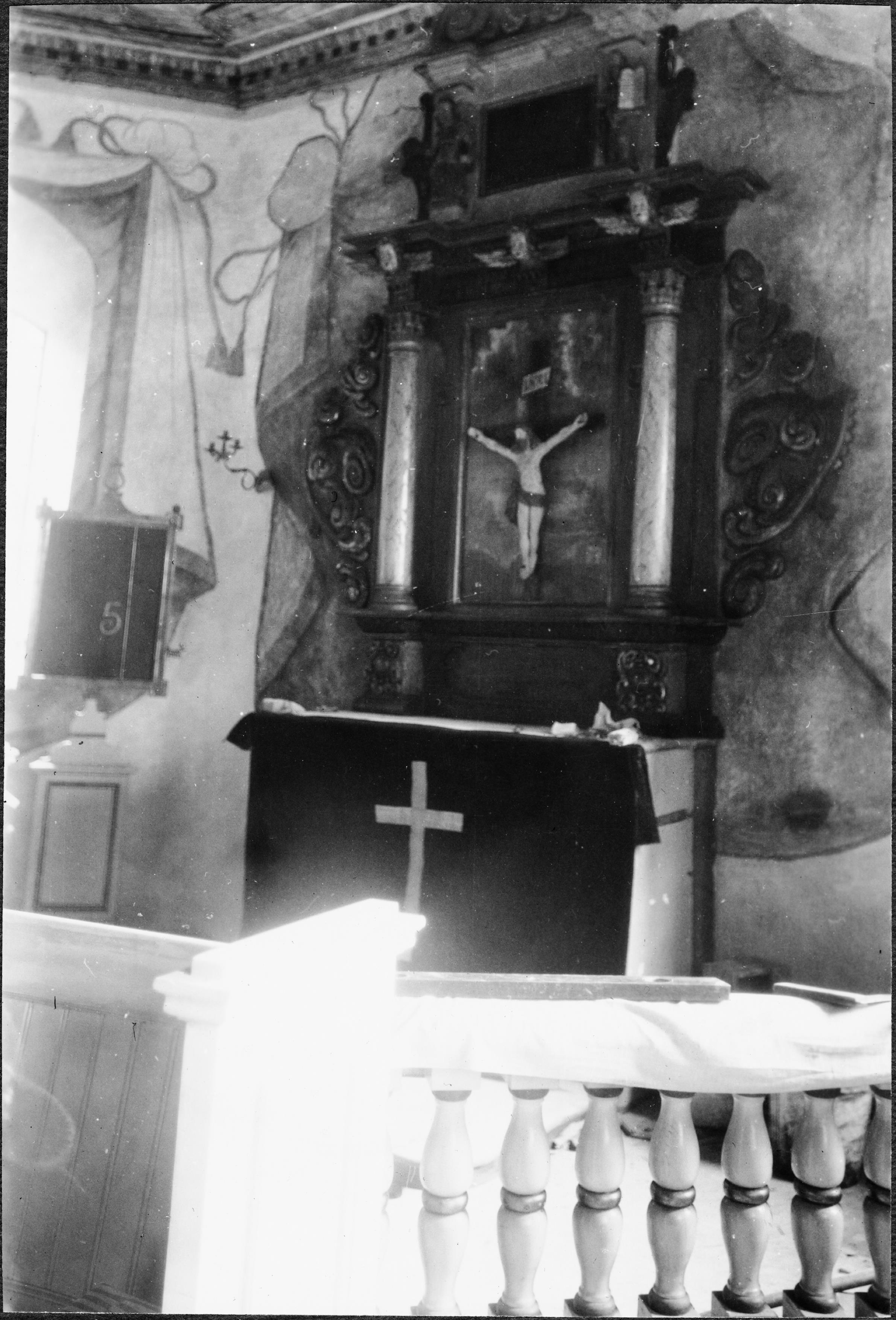 Beskrivning: Altare, altarring, altaruppsats.