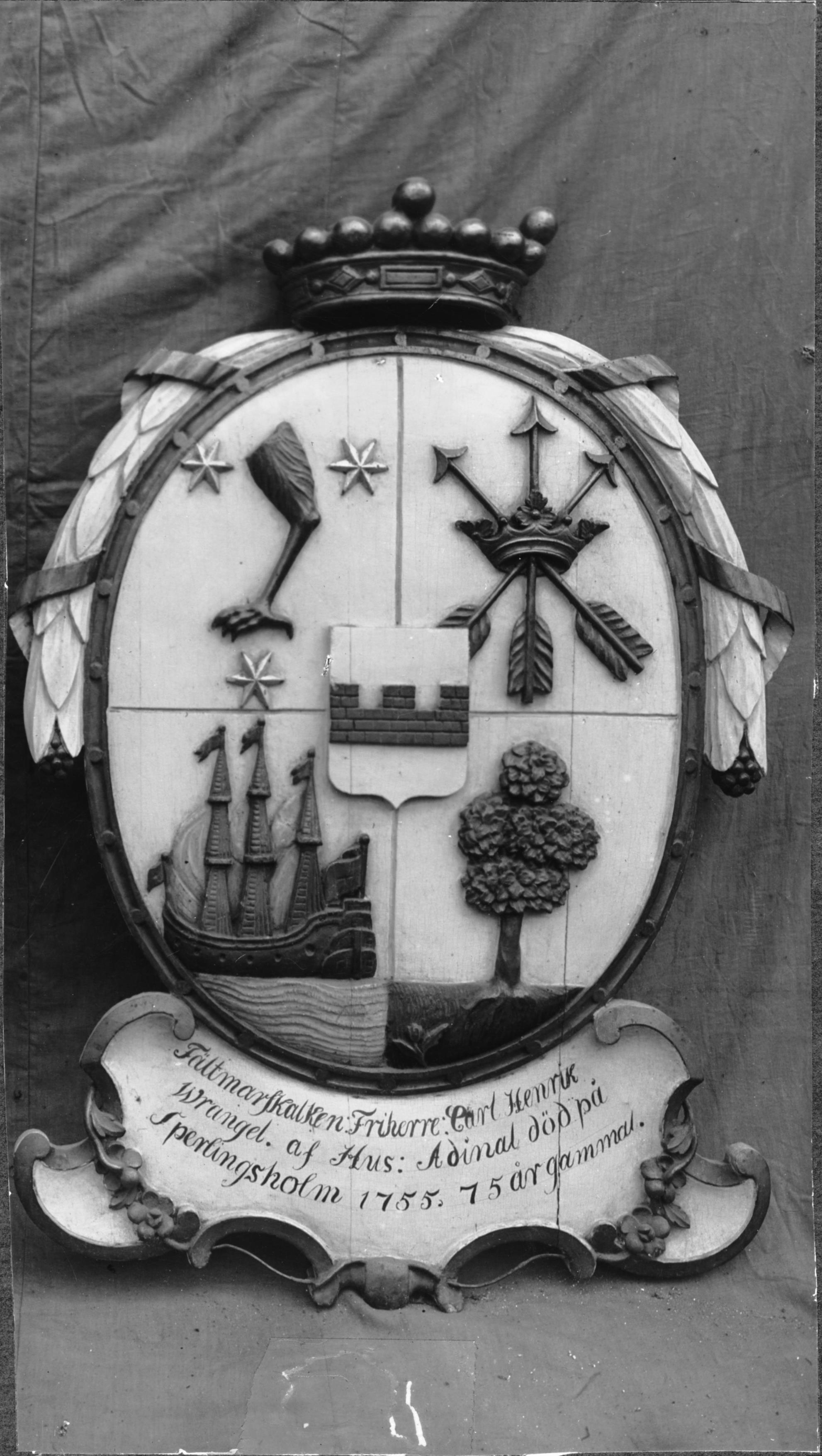 Beskrivning: Begravningsvapen över Carl H. Wrangel.