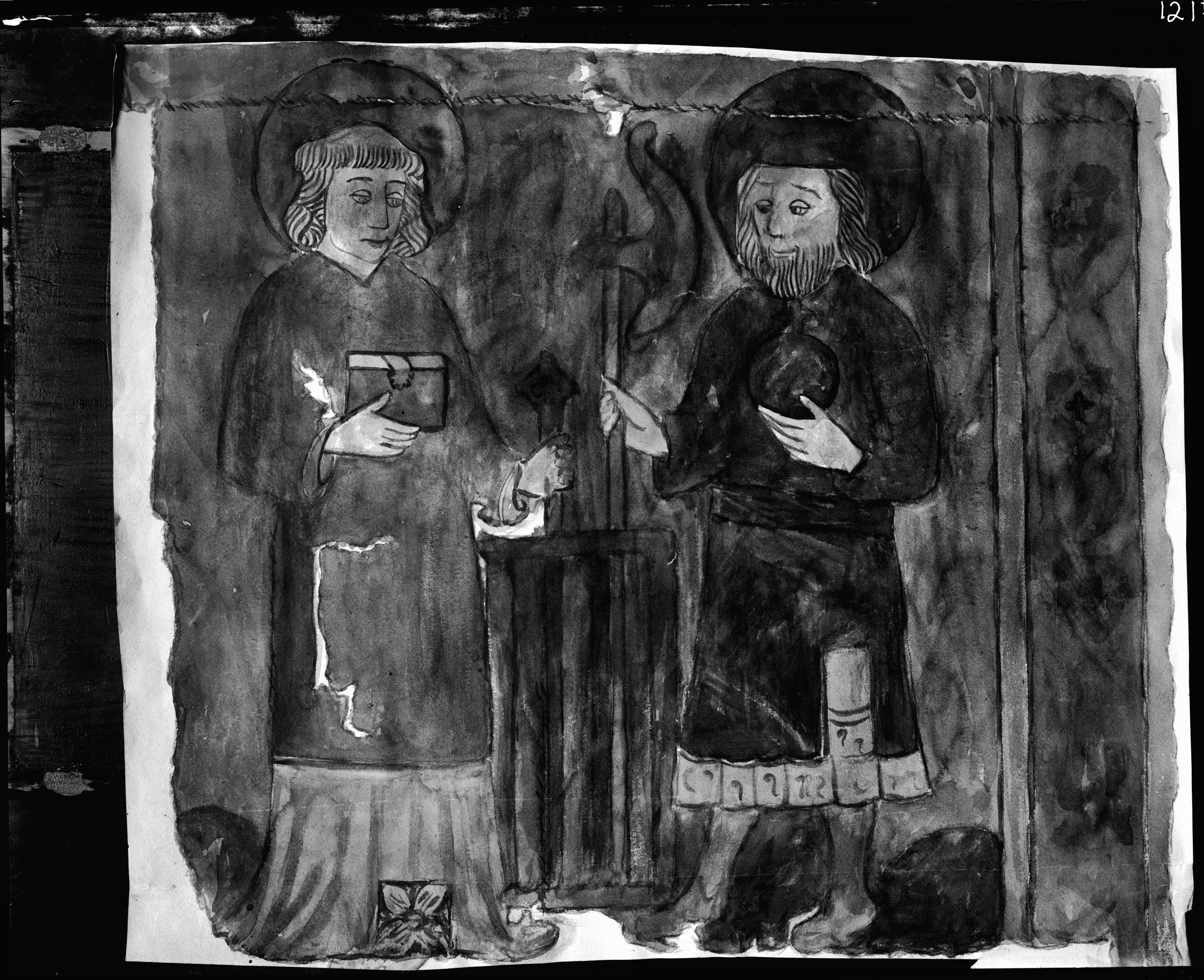 Beskrivning: Processionsfana, detalj. Foto efter akvarell av Signe Smedberg.