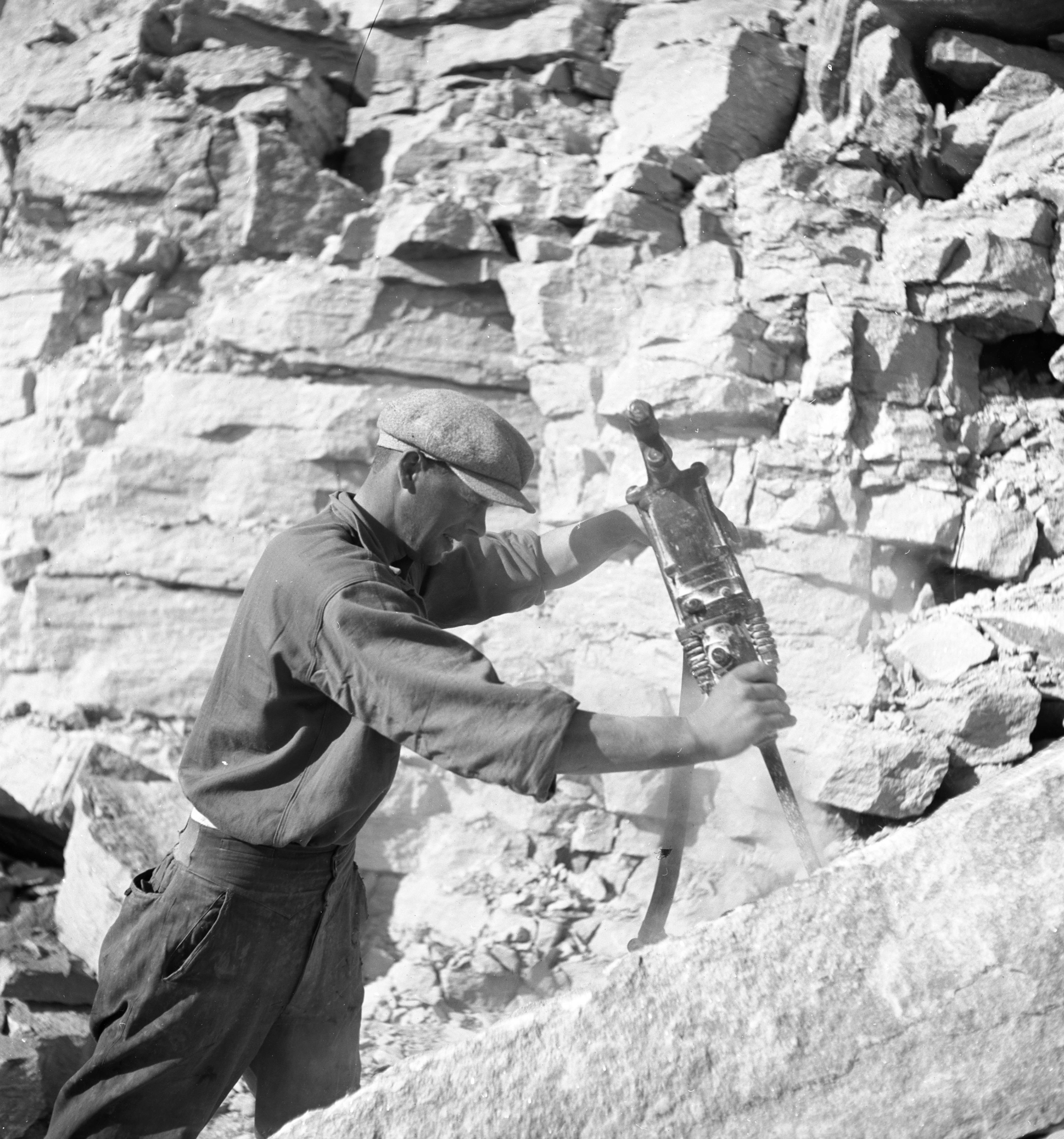 Beskrivning: Arbete med tryckluftsborr. Bilden troligen från omkring 1940.