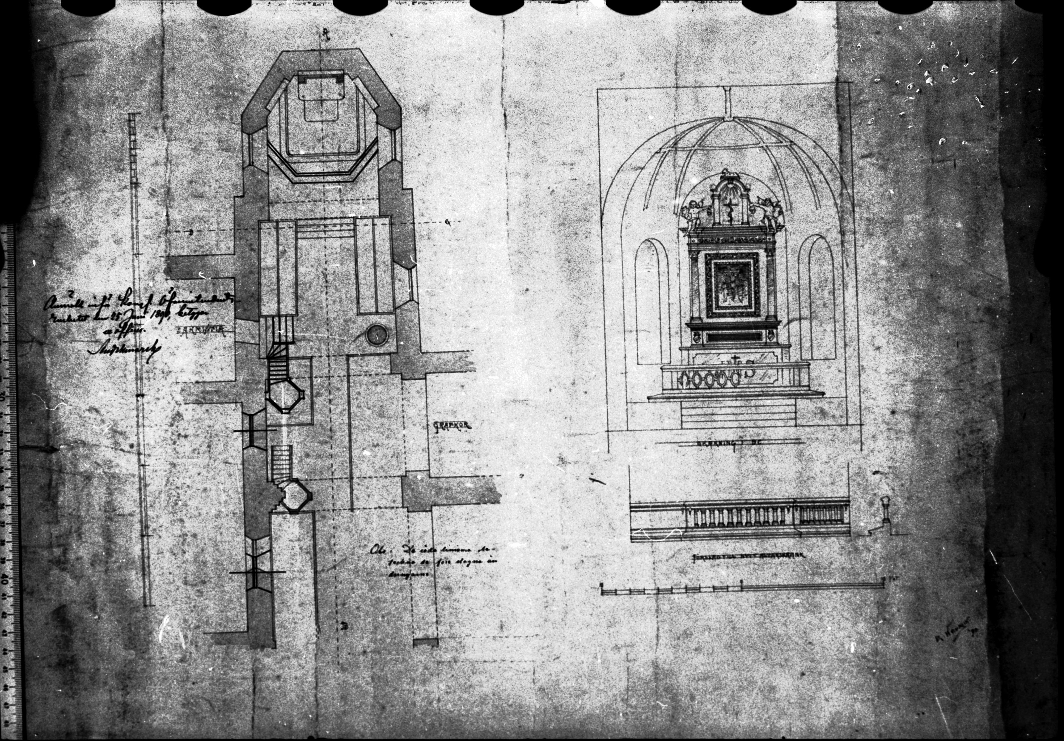 Beskrivning: Foto av planritning av kyrkan från 1890.