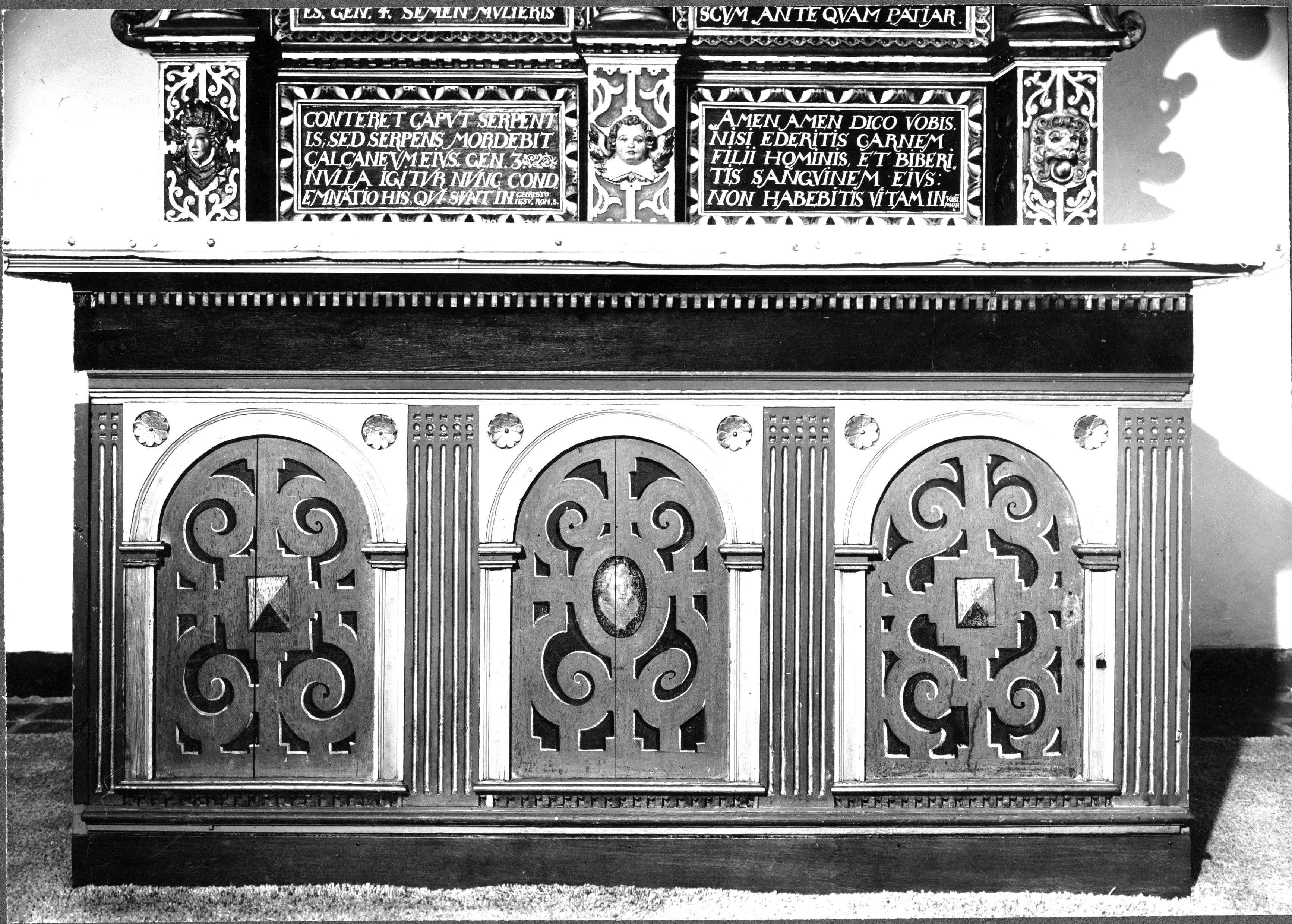 Beskrivning: Altare med antemensale från slutet av 1500-talet.