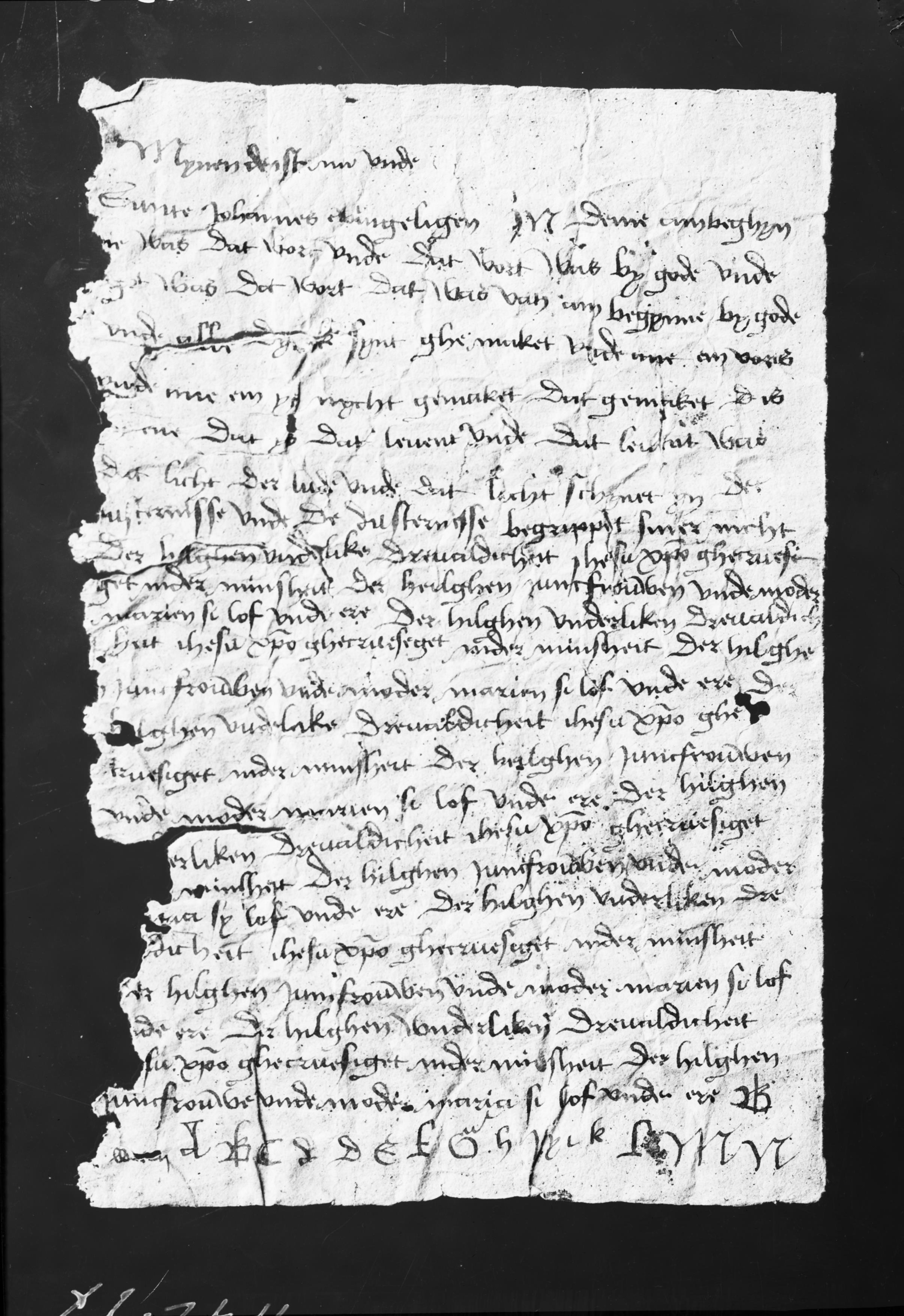 Beskrivning: Brev, från omkring 1485, funnet i altarbrunet.