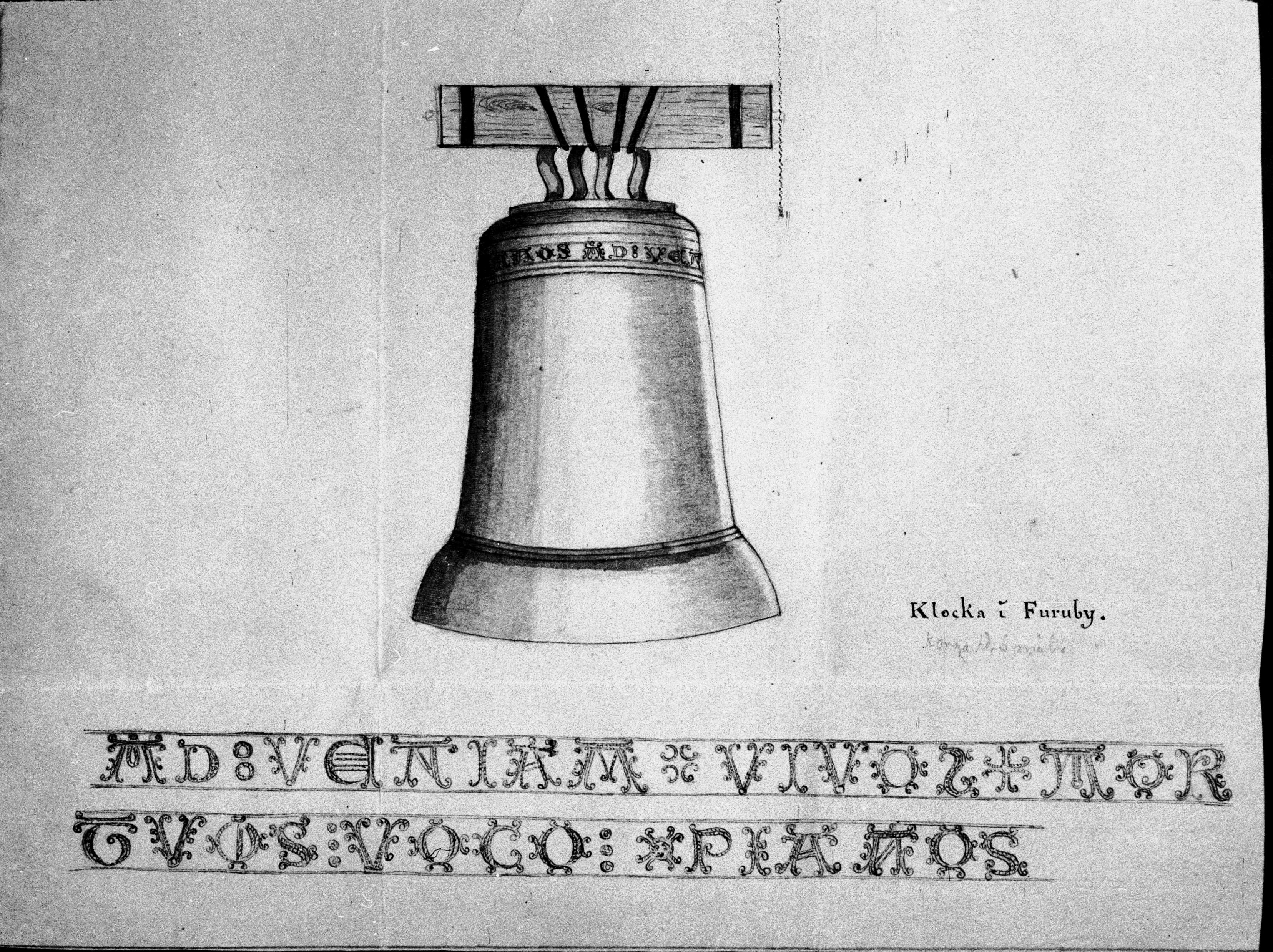 Beskrivning: Klocka. Avfotografering av teckning.