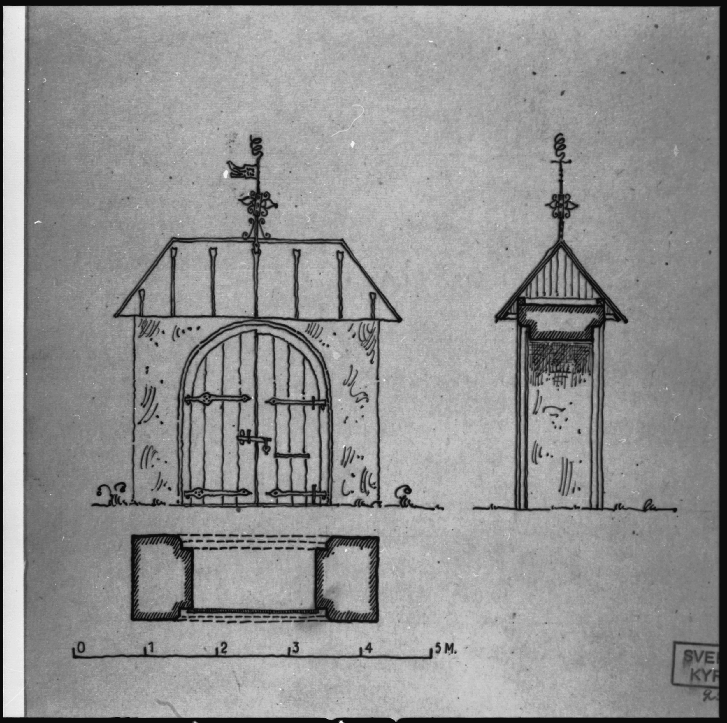 Beskrivning: Foto av ritning av stiglucka. Uppmätning av Henrickson Hansen, 1921. Original i Handteckningssamlingen, ATA.
