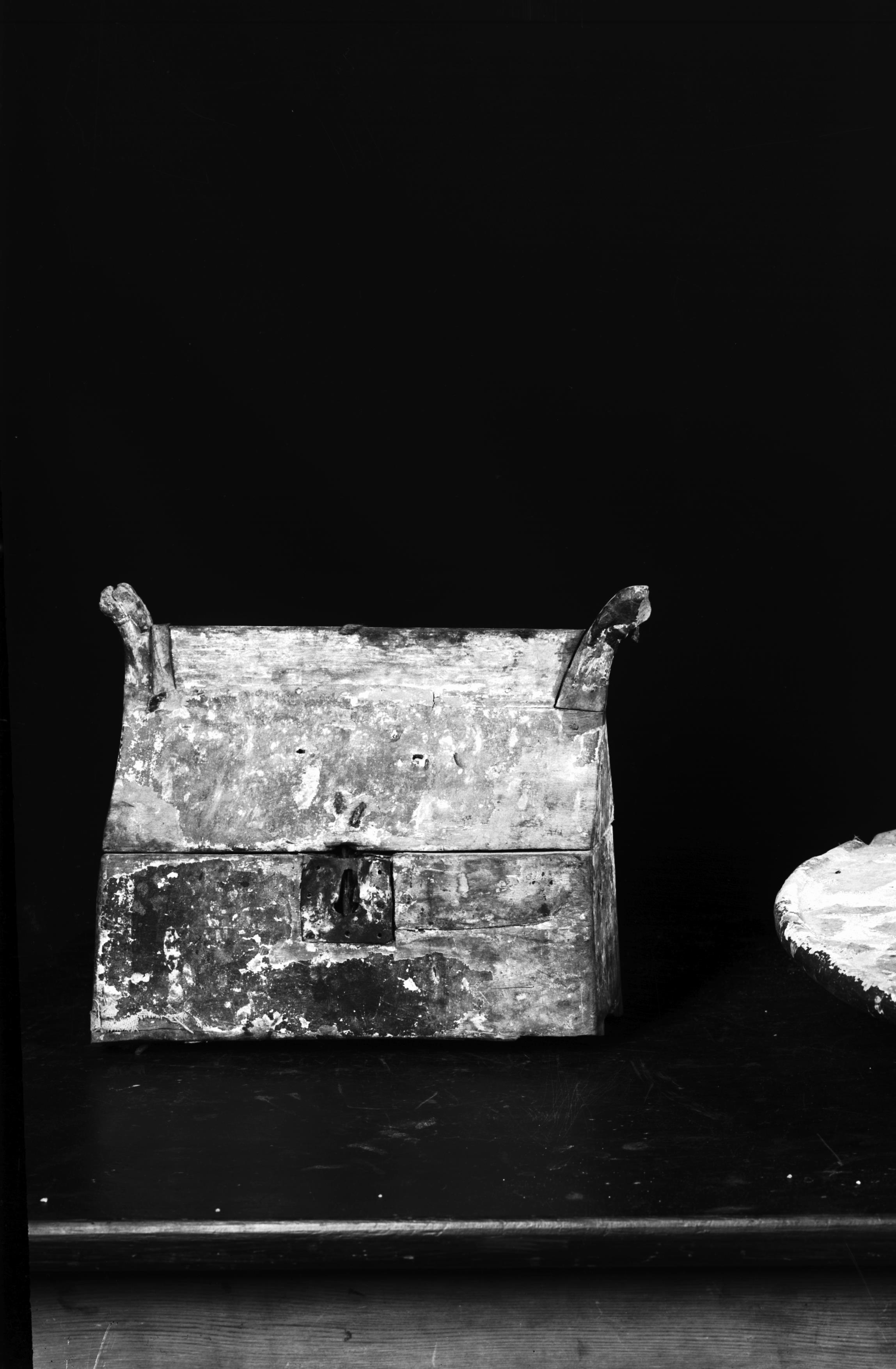 Beskrivning: Relikskrin i trä. Hudiksvallsutställningen 1913, nr 2.