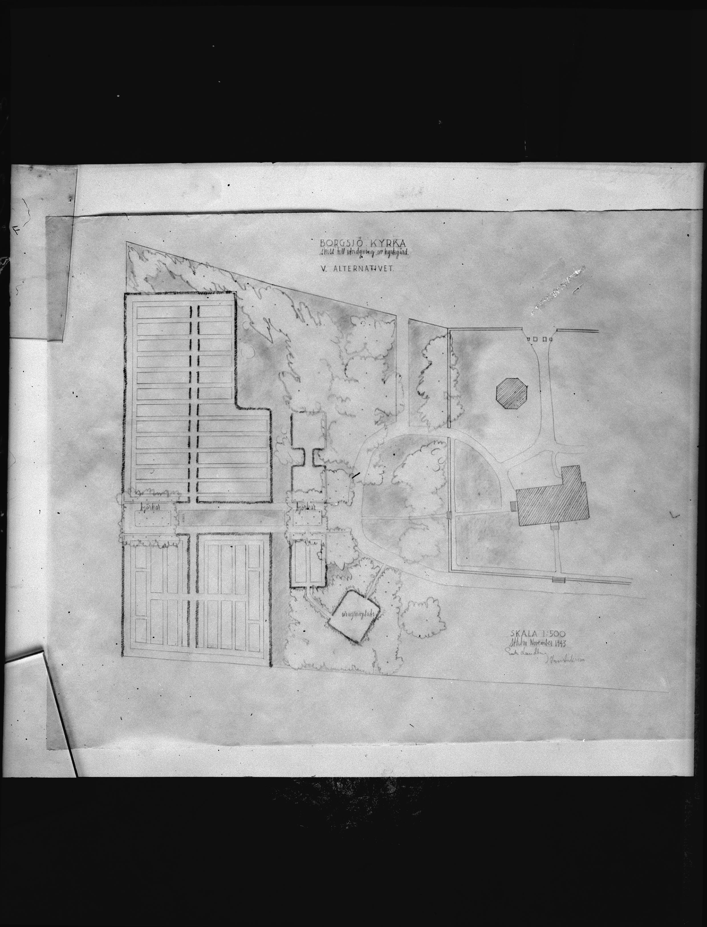 Beskrivning: Situationsplan över kyrkan och kyrkogården.